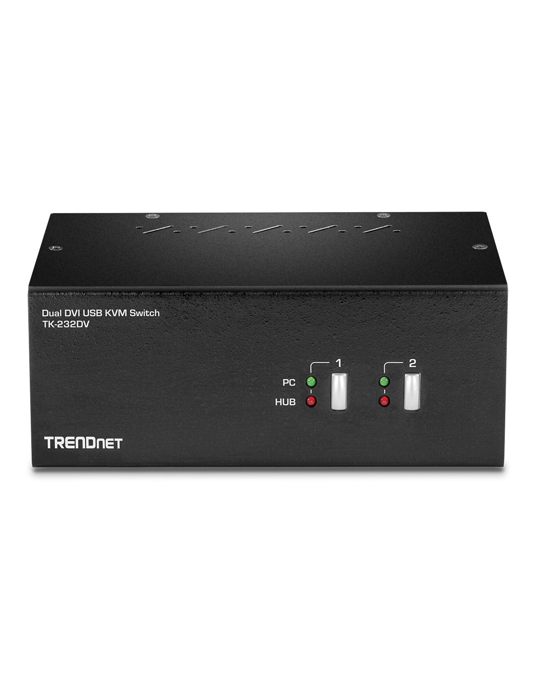 El switch DVI KVM de dos puertos para monitores duales de TRENDnet, modelo TK-232DV, le permite controlar dos computadoras con un solo juego de controles de consola. Disfrute de resoluciones HD sin necesidad de instalar controladores. El TK-232DV está concebido para sistemas de monitor dual con conexiones para ratón USB y teclado. Este switch KVM para monitores duales también ofrece un hub USB de dos puertos para compartir dispositivos de almacenamiento o impresoras entre computadoras.