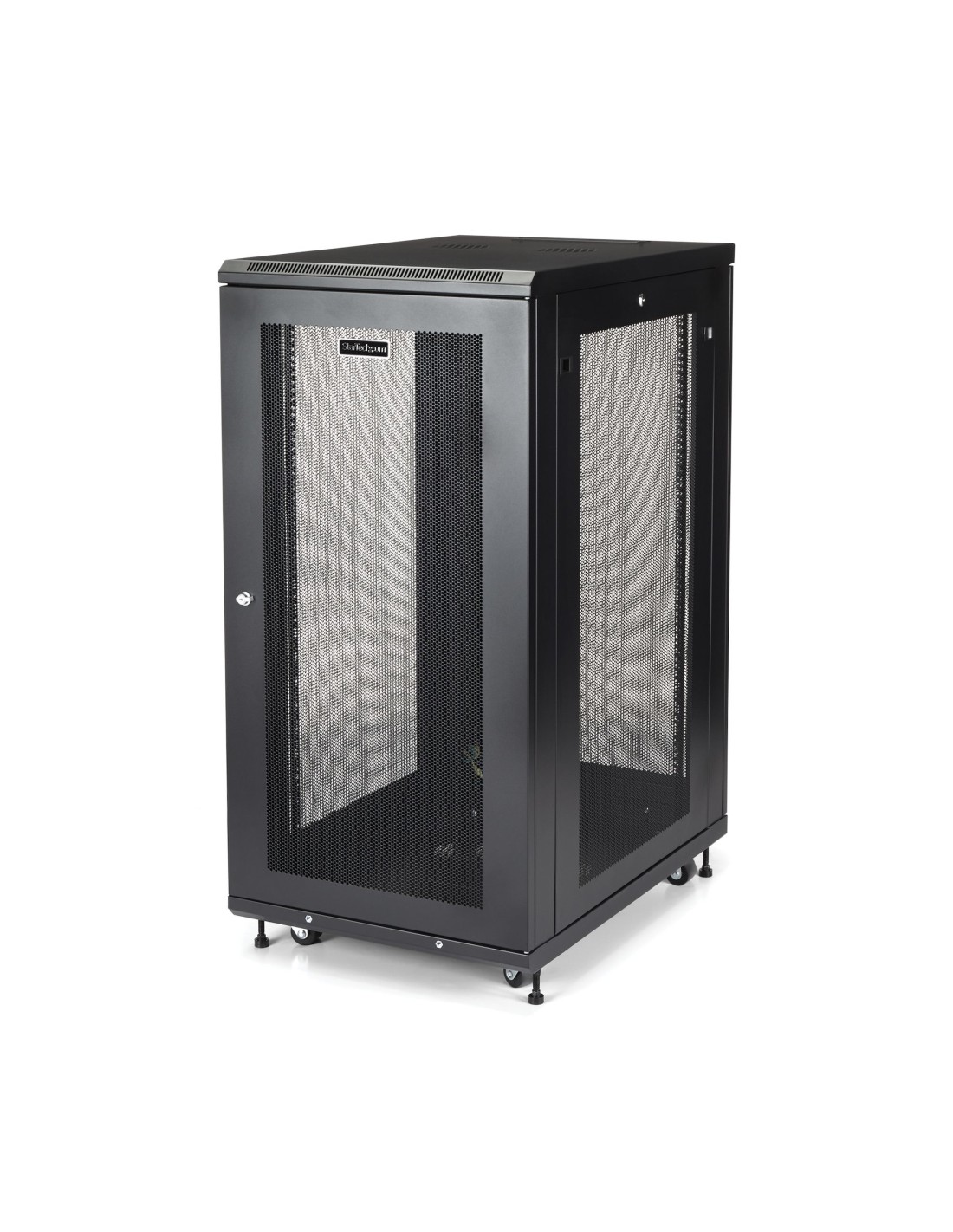 StarTech.com Armario Rack para Servidores 24U 19" 4 Columnas - Rack de Servidores con Cerradura y Seguro - Rack con Ruedas y Carriles de Montaje Ajustables para Equipo de Red. Tipo: Rack o bastidor independiente, Capacidad del rack: 24U, Capacidad máxima de peso: 450 kg, Bloqueo del teclado, Gestión de cables, Rueda de reenvio. Peso: 59 kg. Color del producto: Negro