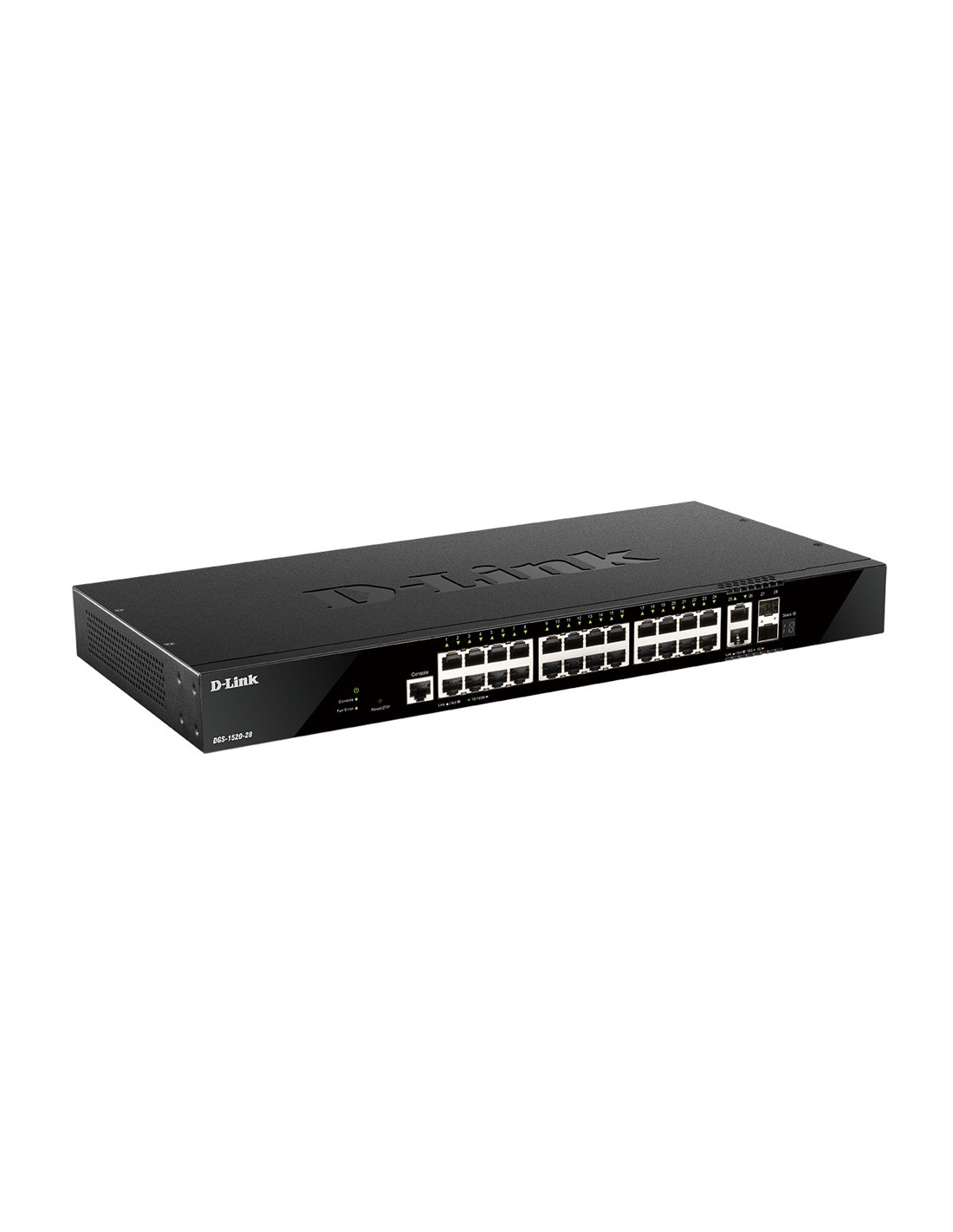 D-Link DGS-1520-28/E. Tipo de interruptor: Gestionado, Capa del interruptor: L3. Puertos tipo básico de conmutación RJ-45 Ethernet: 10G Ethernet (100/1000/10000), Cantidad de puertos básicos de conmutación RJ-45 Ethernet: 26. Tabla de direcciones MAC: 16384 entradas, Capacidad de conmutación: 128 Gbit/s. Estándares de red: IEEE 802.3, IEEE 802.3ab, IEEE 802.3ae, IEEE 802.3af, IEEE 802.3at, IEEE 802.3az, IEEE 802.3bz,.... Montaje en rack, Factor de forma: 1U