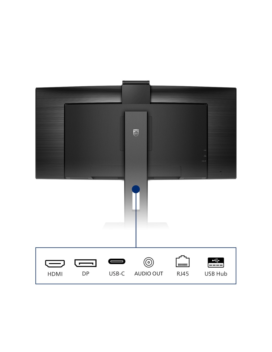 Philips P Line 346P1CRH/00. Diagonal de la pantalla: 86,4 cm (34"), Resolución de la pantalla: 3440 x 1440 Pixeles, Tipo HD: UltraWide Quad HD, Tecnología de visualización: LED, Tiempo de respuesta: 4 ms, Relación de aspecto nativa: 21:9, Ángulo de visión, horizontal: 178°, Ángulo de visión, vertical: 178°. Altavoces incorporados. Conector USB incorporado, Versión de conector USB: 3.2 Gen 2 (3.1 Gen 2). montaje VESA, Ajustes de altura. Color del producto: Negro