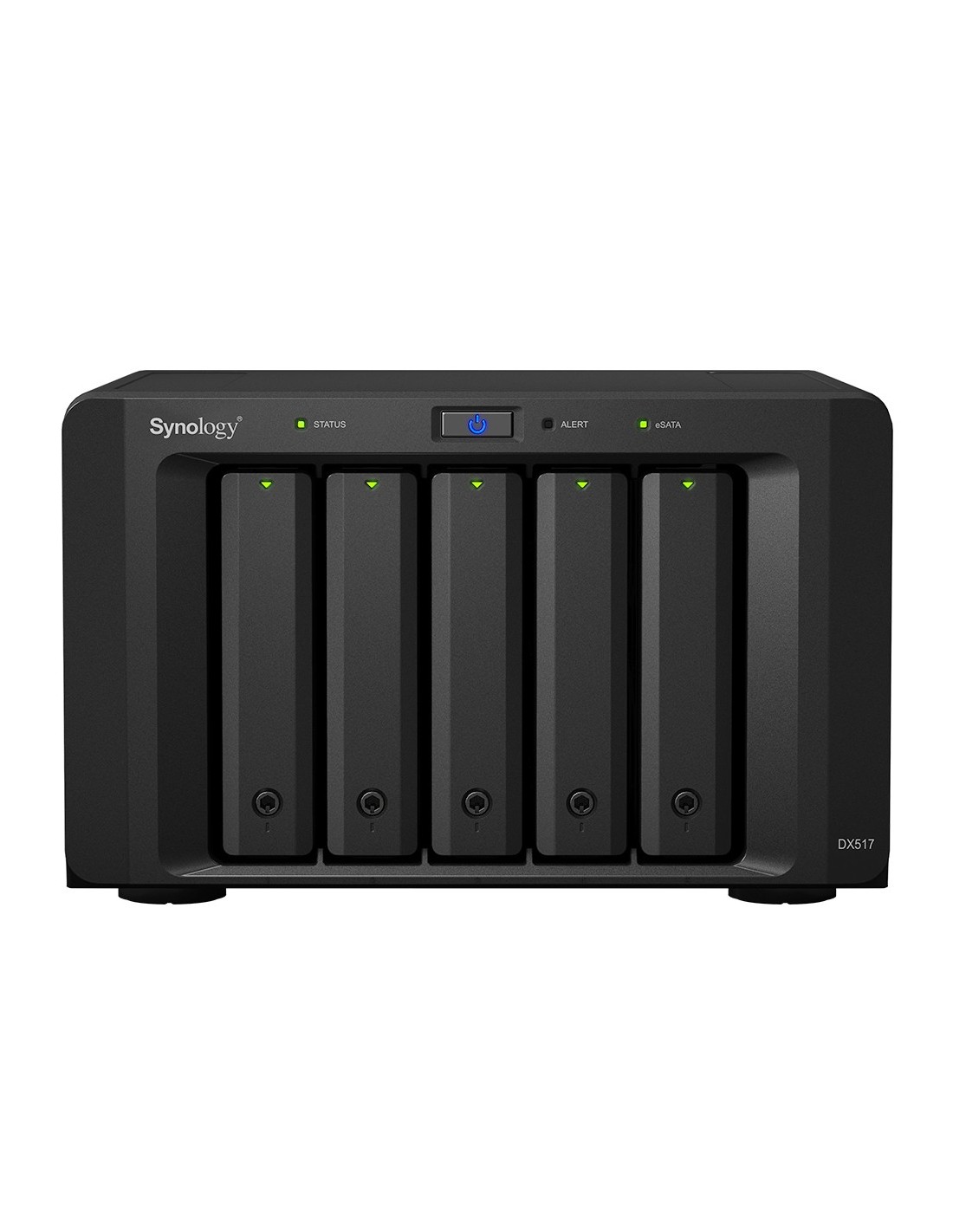 Synology DX517. Capacidad de almacenamiento total instalado: 0 TB. Tipo de chasis: Escritorio, Clase del dispositivo: Pequeñas y medianas empresas. Número de unidades de almacenamiento compatibles: 5, Tipos de unidades de almacenamiento admitidas: HDD & SSD, Interfaces de disco de almacenamiento soportados: SATA, Serial ATA II, Serial ATA III, Tamaños de almacenamiento en disco soportados: 2.5,3.5". Ancho: 248 mm, Profundidad: 233 mm, Altura: 157 mm, Peso: 3,91 kg. Color del producto: Negro