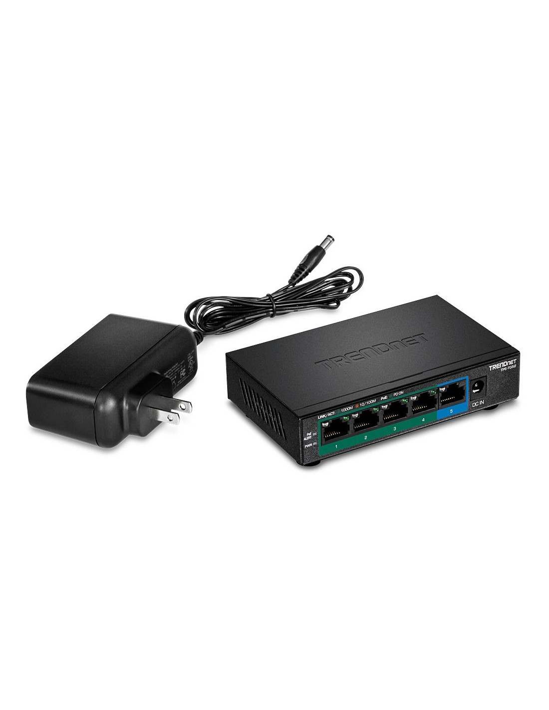 Trendnet TPE-TG52. Tipo de interruptor: No administrado. Puertos tipo básico de conmutación RJ-45 Ethernet: Gigabit Ethernet (10/100/1000), Cantidad de puertos básicos de conmutación RJ-45 Ethernet: 5. Tipo de switch o conmutador óptico: Gigabit Ethernet. Bidireccional completo (Full duplex). Tabla de direcciones MAC: 2000 entradas, Capacidad de conmutación: 10 Gbit/s. Estándares de red: IEEE 802.3, IEEE 802.3ab, IEEE 802.3af, IEEE 802.3at, IEEE 802.3p, IEEE 802.3u, IEEE 802.3x. Voltaje de entrada DC: 54 V. Conector eléctrico: Toma de entrada de CC. Energía sobre Ethernet (PoE). Montaje de pared