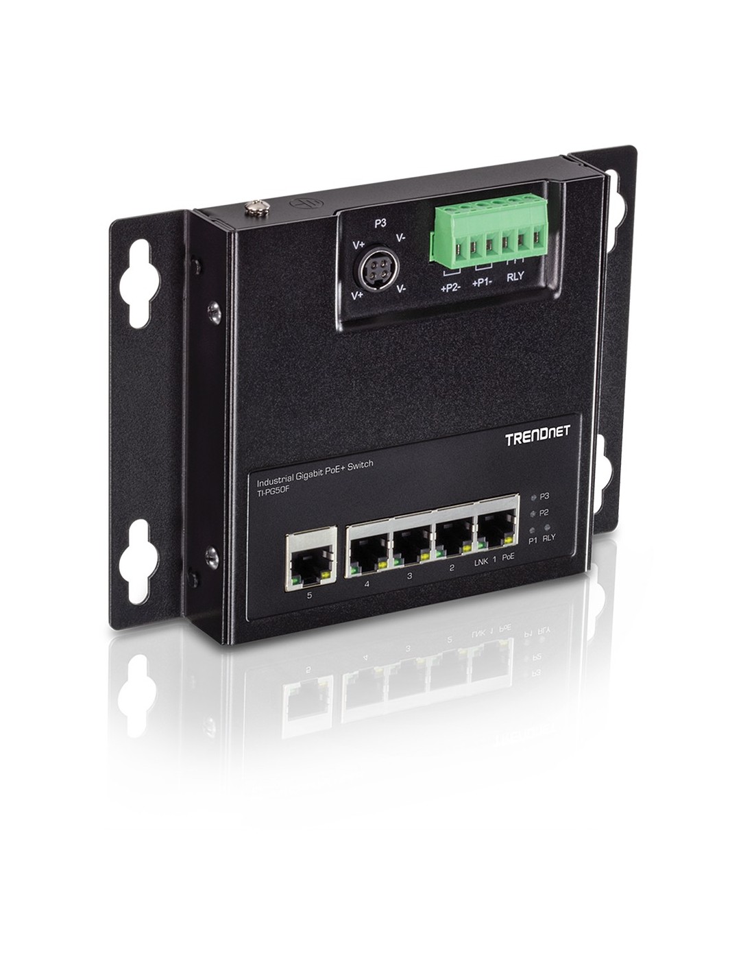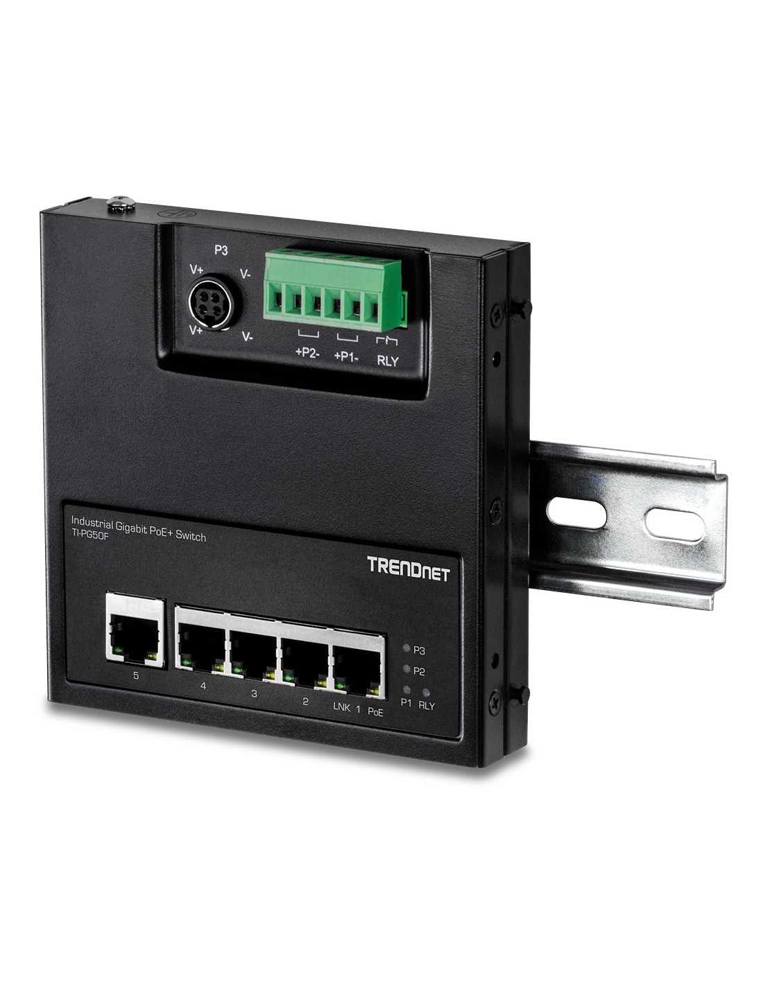 Trendnet TI-PG50F. Tipo de interruptor: No administrado. Cantidad de puertos básicos de conmutación RJ-45 Ethernet: 5. Tabla de direcciones MAC: 2000 entradas, Capacidad de conmutación: 10 Gbit/s. Estándares de red: IEEE 802.3, IEEE 802.3ab, IEEE 802.3af, IEEE 802.3at, IEEE 802.3u, IEEE 802.3x. Energía sobre Ethernet (PoE)