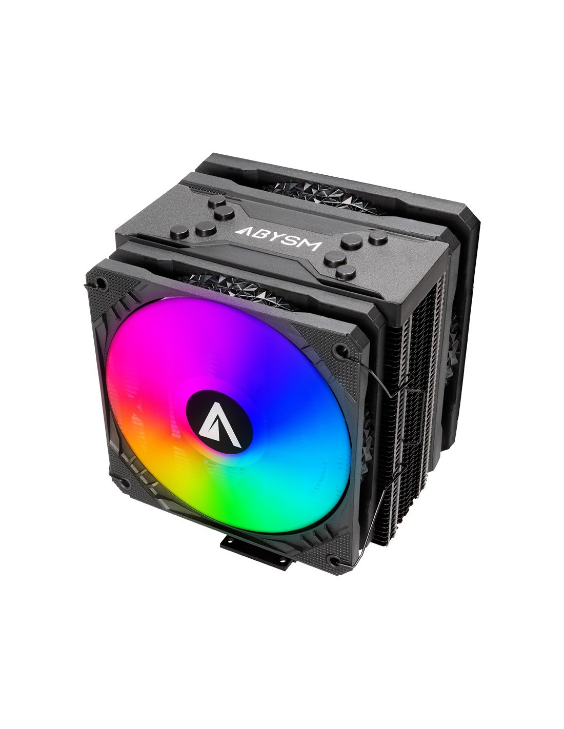 ABYSM Aire Snow IV ARGB. Tipo: Refrigerador de aire, Diámetro de ventilador: 12 cm, Presión máxima de aire: 2,05 mmH2O. Voltaje: 12 V. Ancho: 127 mm, Profundidad: 100 mm, Altura: 155 mm. Color del producto: Negro