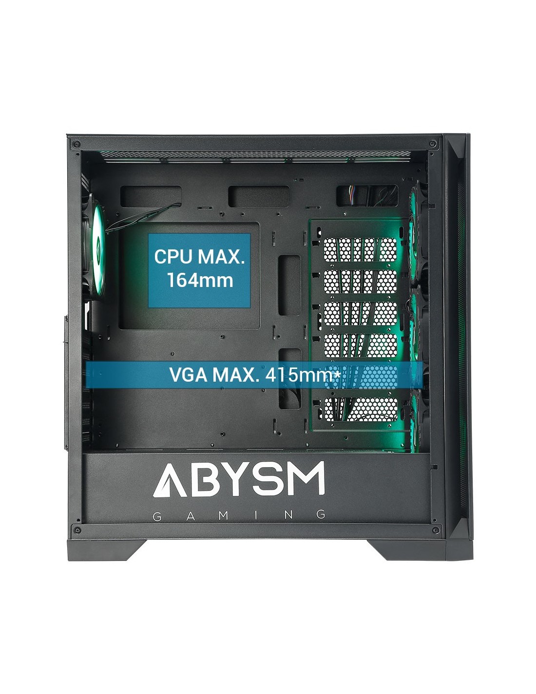 ABYSM Danube Mura BX300 Black ARGB. Factor de forma: Torre, Tipo: PC, Color del producto: Negro. Ubicación de fuente de alimentación: Fondo. Ventiladores frontales instalados: 3x 120 mm, Diámetro de ventiladores frontales soportados: 120,140 mm, Ventiladores traseros instalados: 1x 120 mm. Tamaños de disco duro soportados: 2.5,3.5". Ancho: 215 mm, Profundidad: 488 mm, Altura: 475 mm