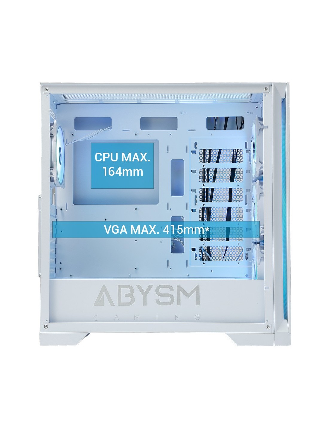 ABYSM Danube Mura BX300 White ARGB. Factor de forma: Torre, Tipo: PC, Color del producto: Blanco. Ubicación de fuente de alimentación: Fondo. Ventiladores frontales instalados: 3x 120 mm, Diámetro de ventiladores frontales soportados: 120,140 mm, Ventiladores traseros instalados: 1x 120 mm. Tamaños de disco duro soportados: 2.5,3.5". Ancho: 215 mm, Profundidad: 488 mm, Altura: 475 mm
