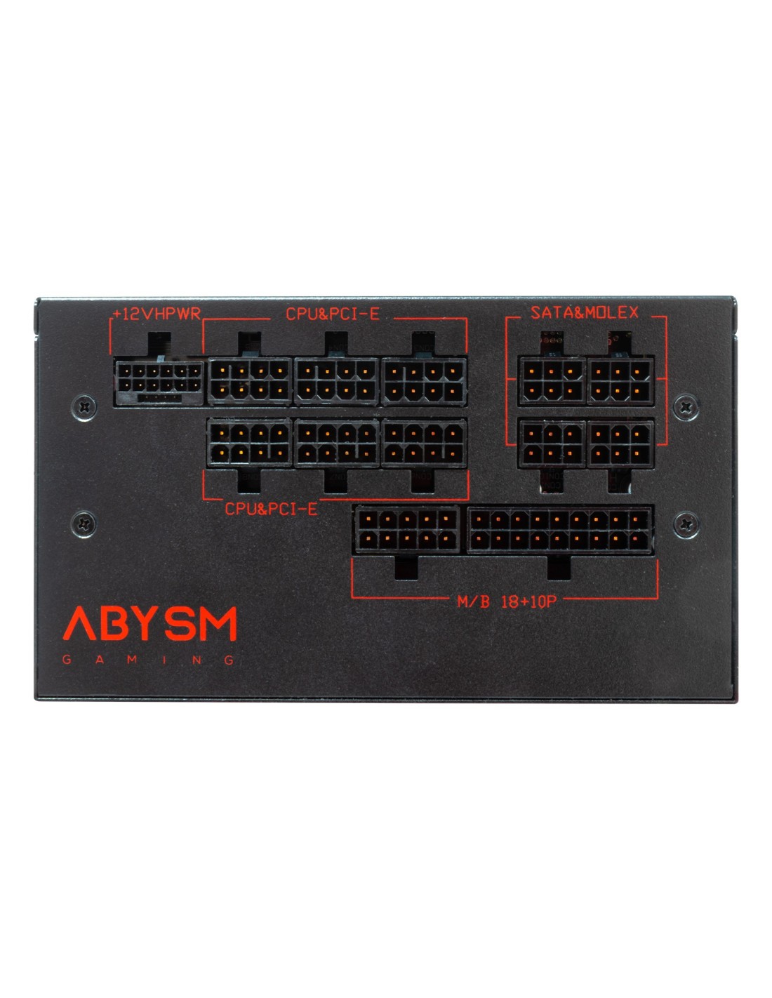 ABYSM Morpheo GX5 1000W. Potencia total: 1000 W, Voltaje de entrada AC: 100 - 240 V, Frecuencia de entrada AC: 50/60 Hz. Alimentador de energía para tarjeta madre: 20+4 pin ATX, Longitud del cable de alimentación de la placa base: 61 cm, Longitud del cable de alimentación SATA: 450,600,750,900 mm. Utilizar con: PC, Factor de forma de fuente de alimentación (PSU): ATX, Certificación 80 PLUS: 80 PLUS Gold. Color del producto: Negro, Rojo, Tipo de enfriamiento: Activo, Diámetro de ventilador: 12 cm. Cables incluidos: Corriente alterna, PCIe, Peripheral (Molex), SATA