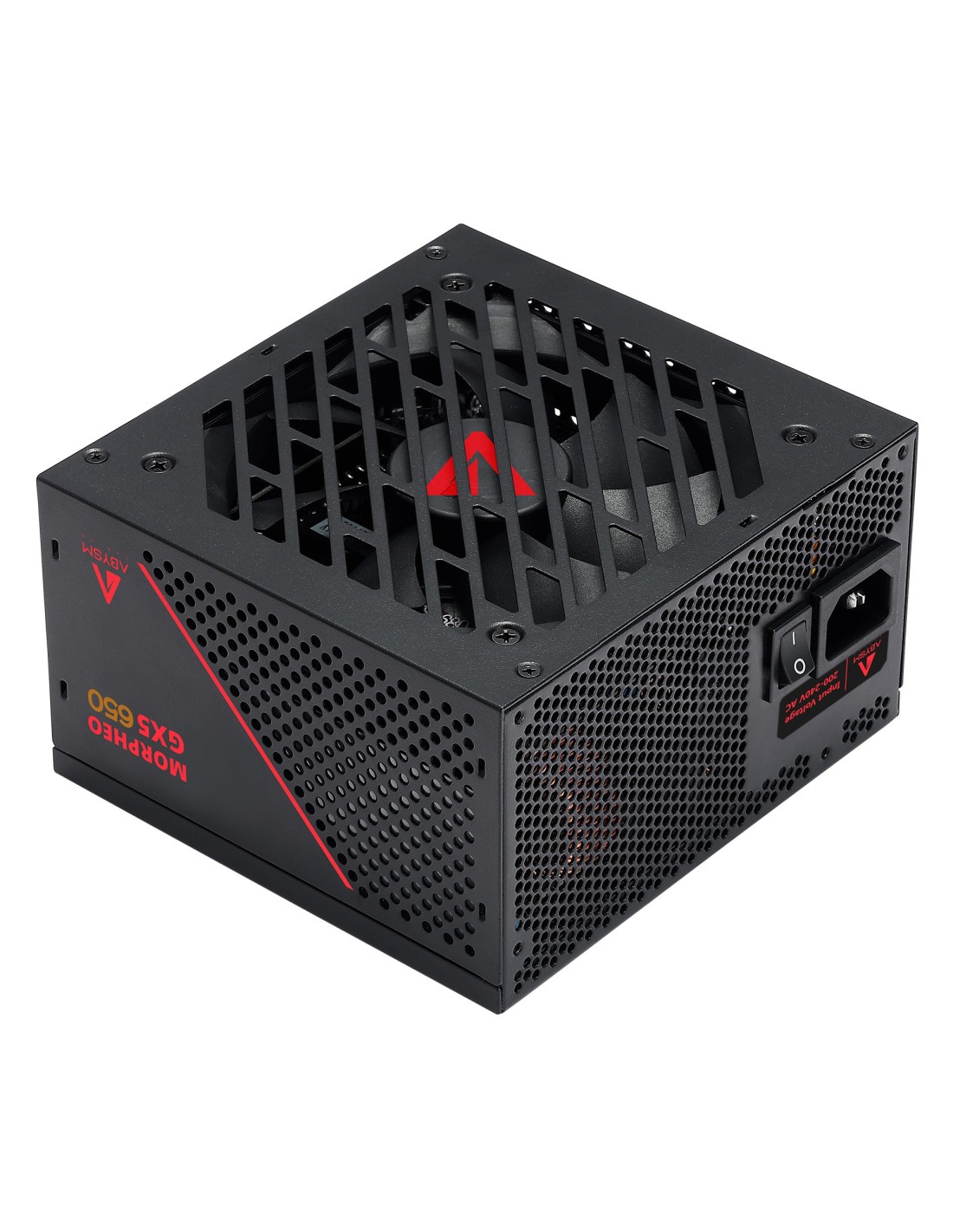 ABYSM MORPHEO GX5. Potencia total: 650 W, Voltaje de entrada AC: 200 - 240 V, Corrección del factor de potencia tipo (PFC): Activo. Alimentador de energía para tarjeta madre: 20+4 pin ATX, Longitud del cable de alimentación de la placa base: 65 cm, Longitud del cable de alimentación SATA: 550,700,850,1000 mm. Utilizar con: PC, Factor de forma de fuente de alimentación (PSU): ATX, Certificación 80 PLUS: 80 PLUS Bronze. Color del producto: Negro, Tipo de enfriamiento: Activo, Diámetro de ventilador: 12 cm. Cables incluidos: CPU, PCIe, Peripheral (Molex), SATA