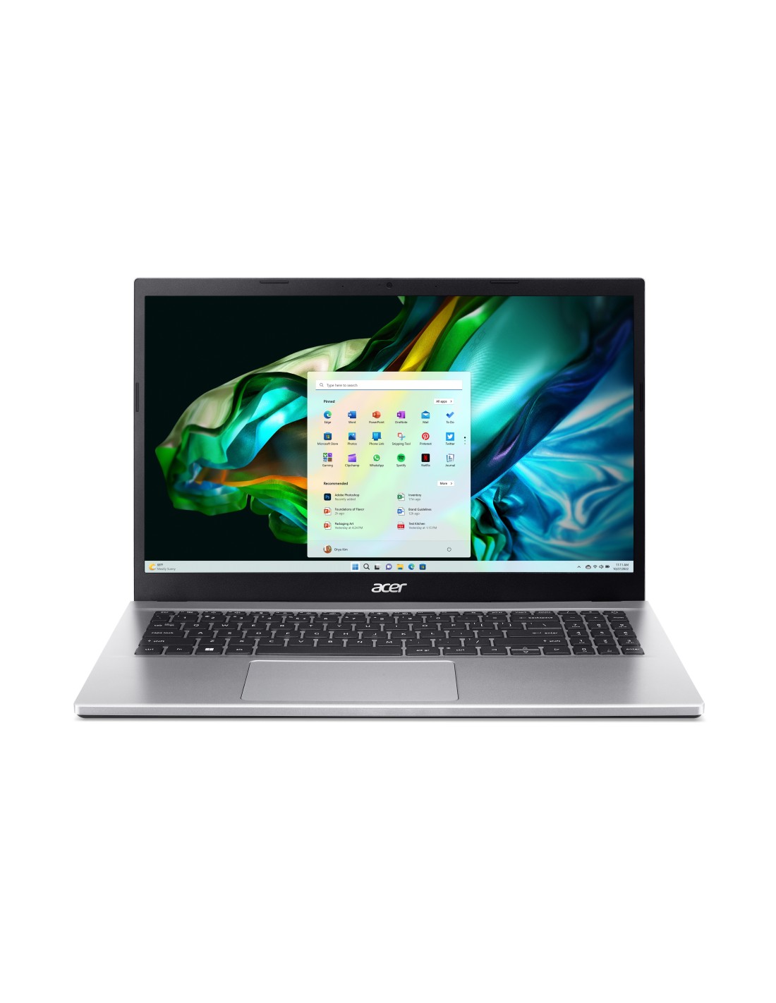 Acer Aspire 3 A315-44P-R4MV. Tipo de producto: Portátil, Factor de forma: Concha. Familia de procesador: AMD Ryzen™ 7, Modelo del procesador: 5700U, Frecuencia del procesador: 1,8 GHz. Diagonal de la pantalla: 39,6 cm (15.6"), Tipo HD: Full HD, Resolución de la pantalla: 1920 x 1080 Pixeles. Memoria interna: 16 GB, Tipo de memoria interna: DDR4-SDRAM. Capacidad total de almacenaje: 512 GB, Unidad de almacenamiento: SSD. Modelo de adaptador gráfico incorporado: AMD Radeon Graphics. Sistema operativo instalado: Windows 11 Home. Color del producto: Plata