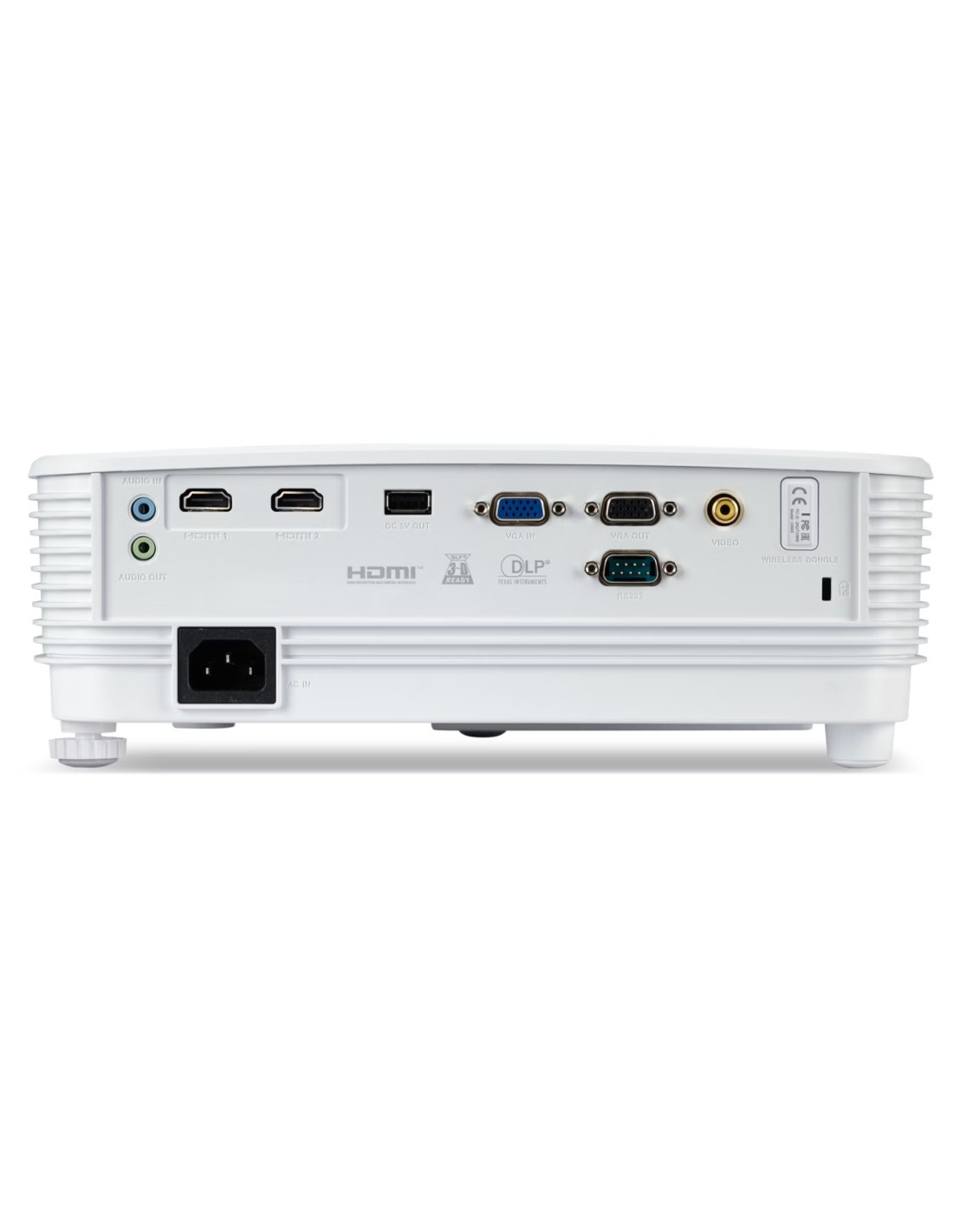 Acer P1257i. Brillo de proyector: 4500 lúmenes ANSI, Resolución original del proyector: XGA (1024x768), Razón de contraste (típica): 20000:1. Tipo de fuente luminosa: LED, Potencia de la lámpara: 203 W, Cantidad de lámparas: 1 lámpara(s). Intervalo de longitud focal: 16.88 - 21.88 mm, Rango de apertura: 2,59 - 2,87, Relación de alcance: 1.51 to 1.97 (1651 mm@2000 mm). Señal analógica: NTSC, PAL, SECAM. Modos de proyección: Techo, Frente, Parte trasera