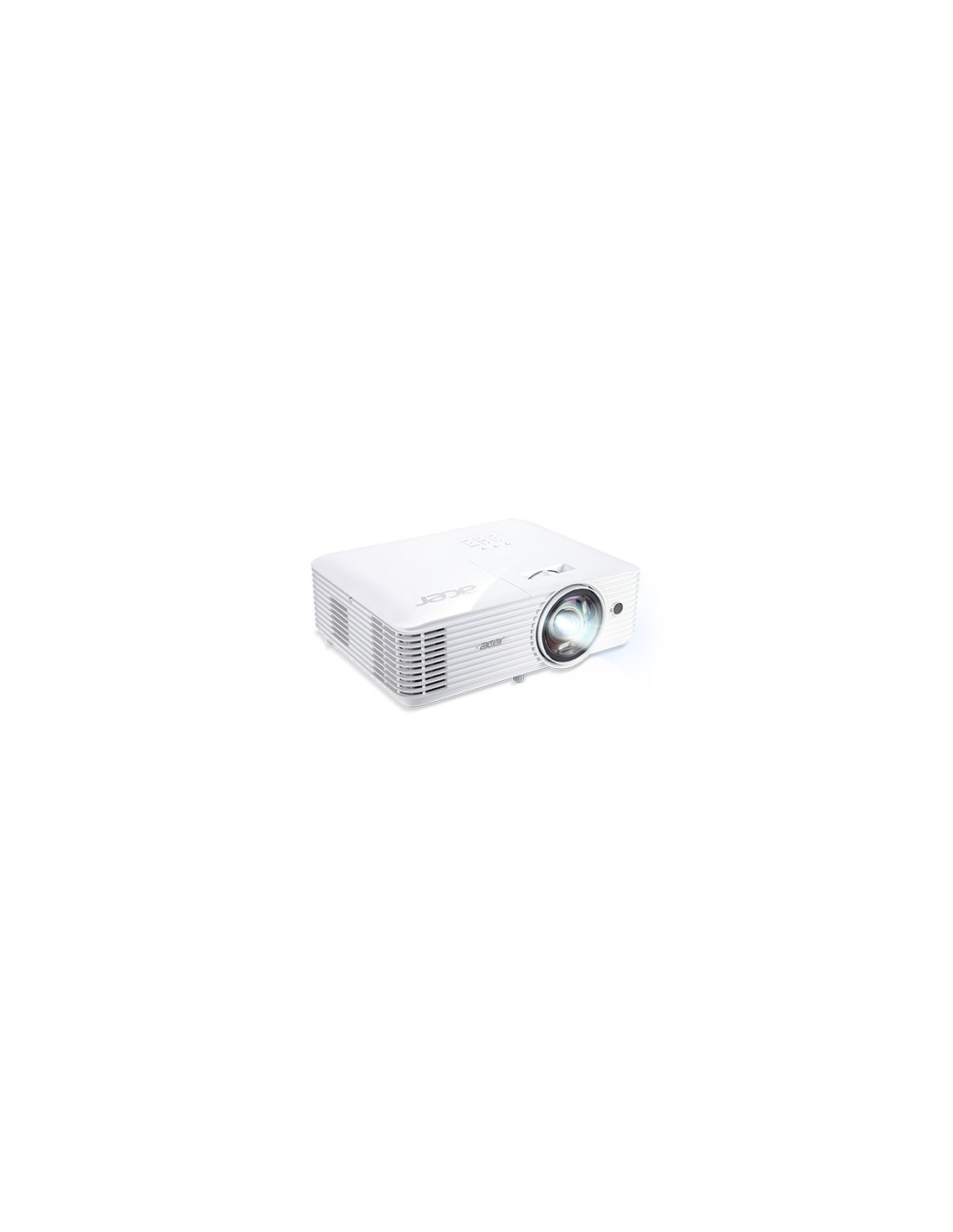 Acer S1386WH. Brillo de proyector: 3600 lúmenes ANSI, Tecnología de proyección: DLP, Resolución original del proyector: WXGA (1280x800). Tipo de fuente luminosa: Lámpara, Duración de la fuente luminosa: 5000 h, Vida útil de la fuente luminosa (modo económico): 6000 h. Enfoque: Manual, Distancia focal fija: 7,51 mm, Rango de apertura: 2,8 - 2,8. Señal analógica: NTSC, PAL, SECAM, Formatos gráficos soportados: 1280 x 800 (WXGA). Nivel de ruido: 32 dB, Nivel de ruido (modo económico): 24 dB, Modos de proyección: Techo, Frente, Parte trasera