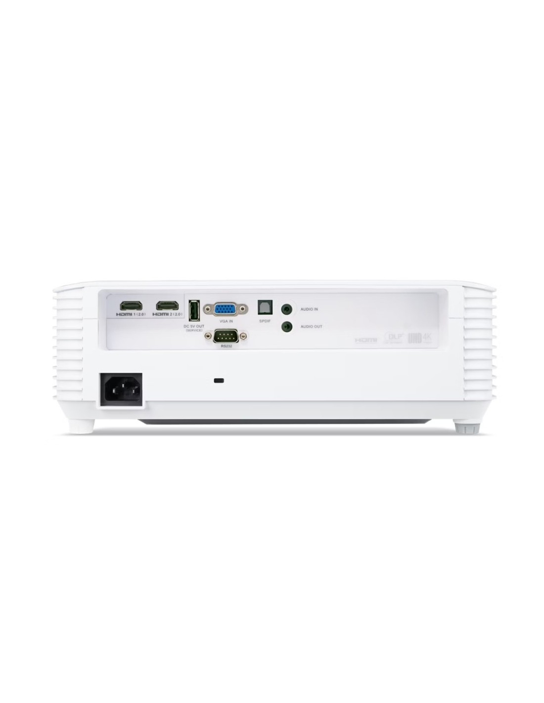 Acer X1827. Brillo de proyector: 4000 lúmenes ANSI, Tecnología de proyección: DLP, Resolución original del proyector: UHD 4K (3840x2160). Duración de la fuente luminosa: 5000 h, Vida útil de la fuente luminosa (modo económico): 10000 h, Potencia de la lámpara: 240 W. Enfoque: Auto. Señal analógica: NTSC, PAL, SECAM. Nivel de ruido: 26 dB