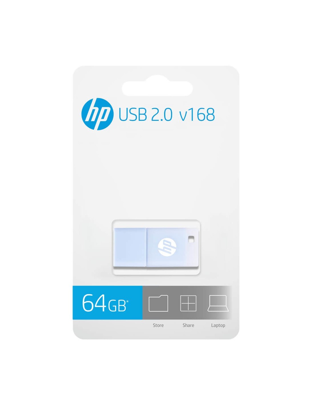 AION HP V168. Capacidad: 64 GB, Interfaz del dispositivo: USB tipo A, Versión USB: 2.0. Factor de forma: Tapa. Peso: 7 g. Color del producto: Azul