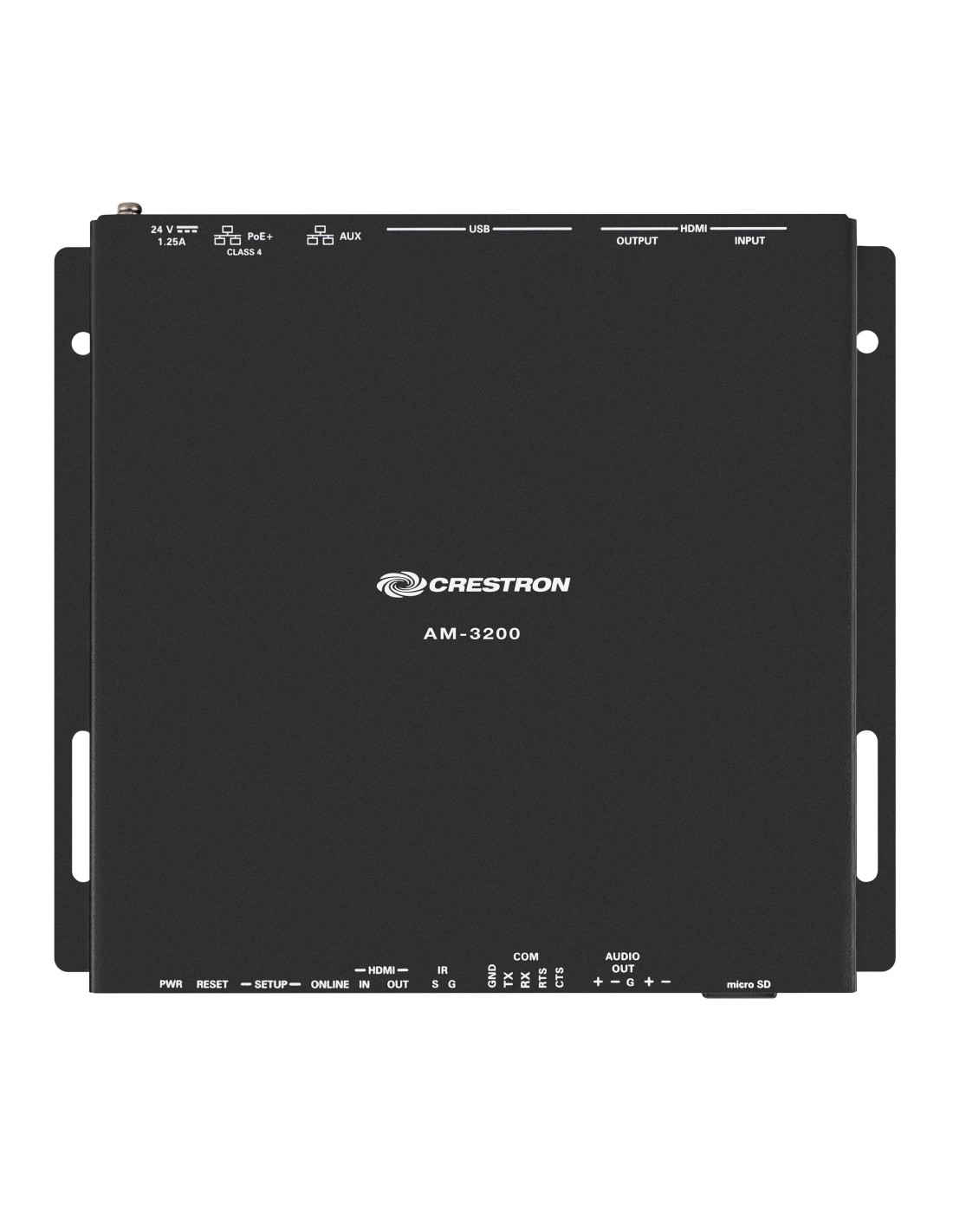 Crestron AM-3200. Tipo: Repetidor de señales AV, Máxima resolución: 1920 x 1080 Pixeles, Máxima velocidad de actualización: 30 Hz. Tecnología de conectividad: Inalámbrico y alámbrico, Conector USB: USB tipo A, USB Tipo B. Voltaje de entrada AC: 100 - 240 V, Frecuencia de entrada AC: 50 - 60 Hz, Consumo energético: 14 W. Ancho: 188 mm, Profundidad: 163 mm, Altura: 33 mm