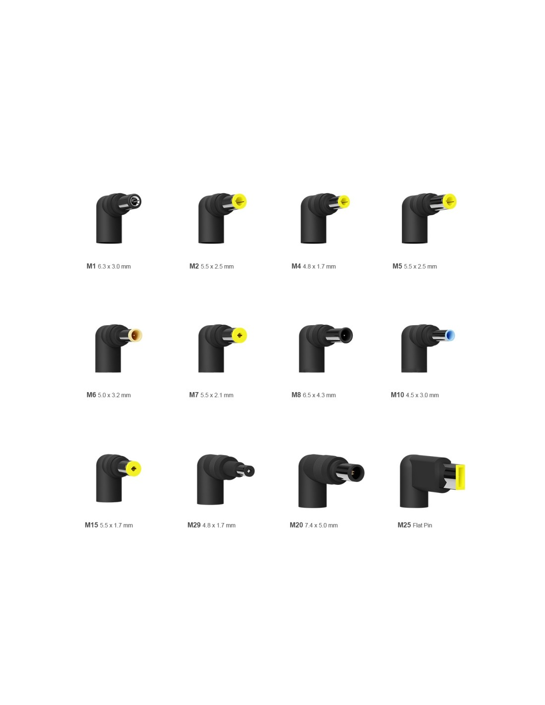 12 Conectores DC intercambiables para asegurar una máxima compatibilidad de portátiles.