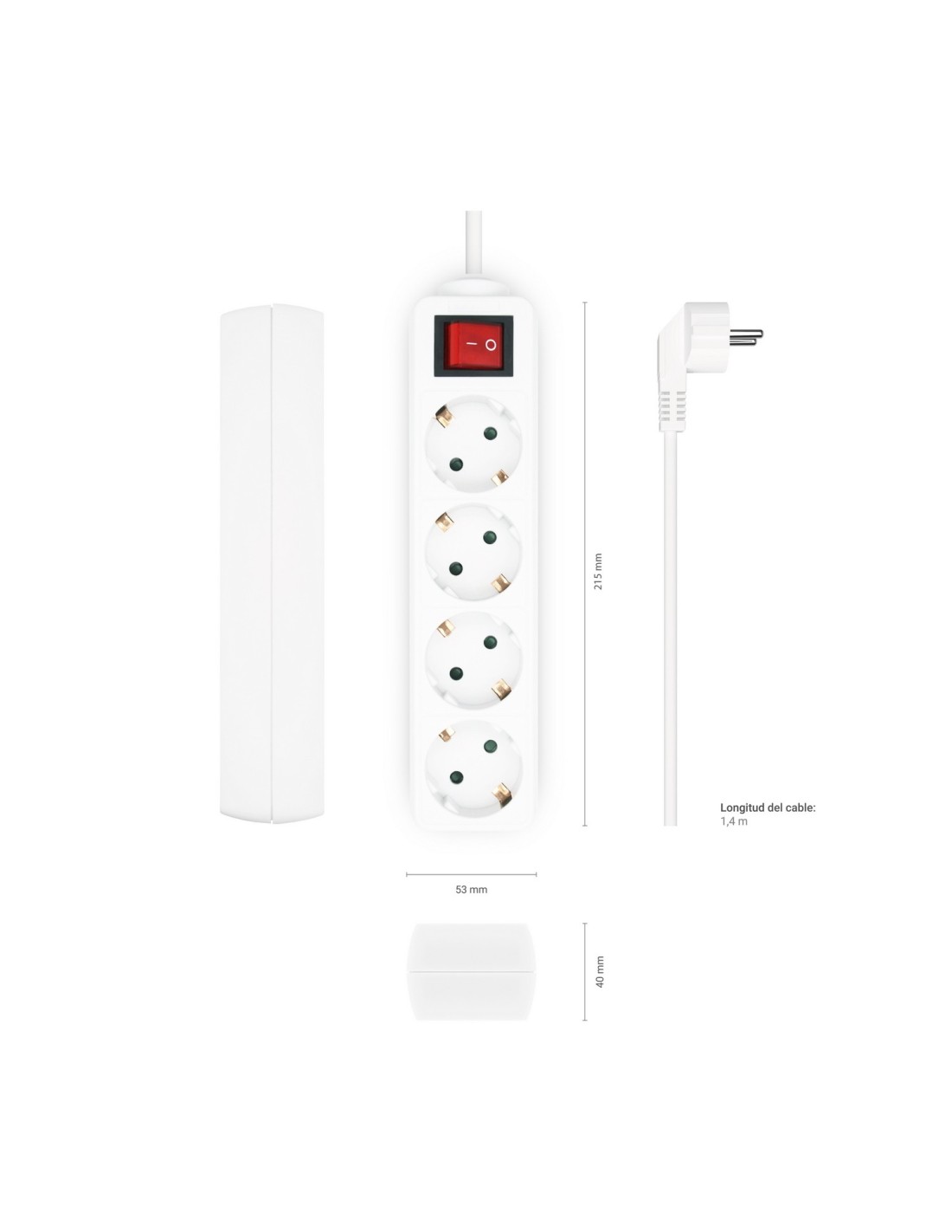 AISENS Base Multiple 4 Tomas con Interruptor con Cable 3×1.5mm2, Blanco, 1.4 m, 1,4 m, Interior, Tipo F, Type F (CEE 7/4), Angular, 1,5 mm²
