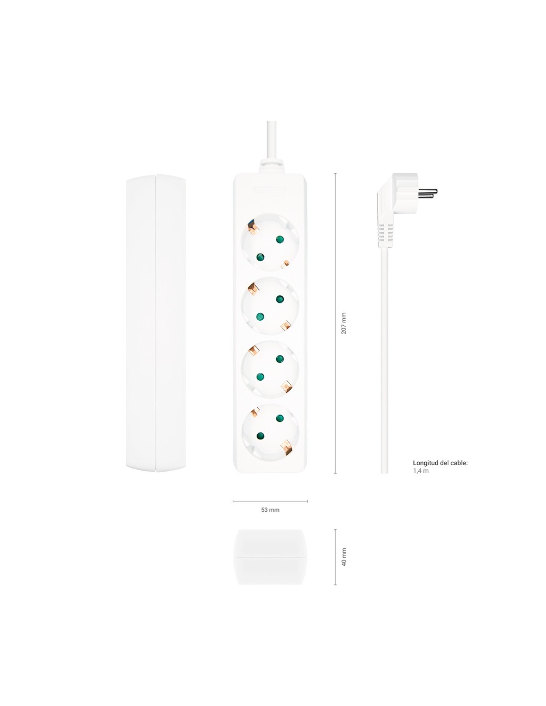 AISENS Base Multiple 4 Tomas Sin Interruptor Con Cable 3x1.5mm2, Blanco, 1.4m, 1,4 m, Interior, Tipo F, Type F (CEE 7/4), Angular, 1,5 mm²
