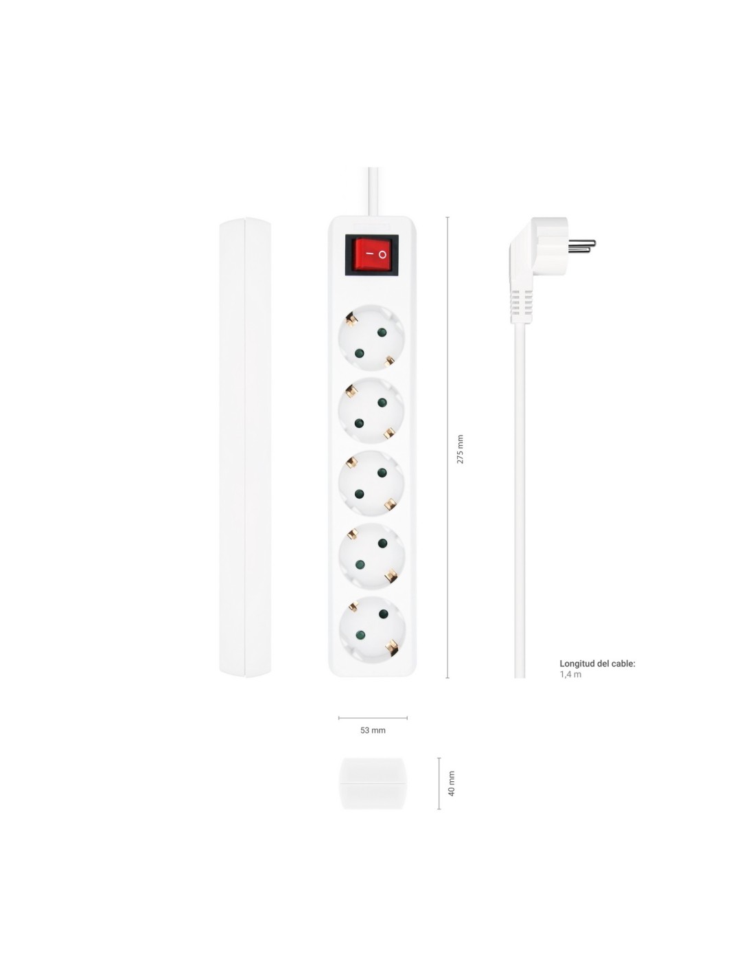 AISENS Base Multiple 5 Tomas con Interruptor con Cable 3×1.5mm2, Blanco, 1.4 m, 1,4 m, Interior, Tipo F, Type F (CEE 7/4), Angular, 1,5 mm²