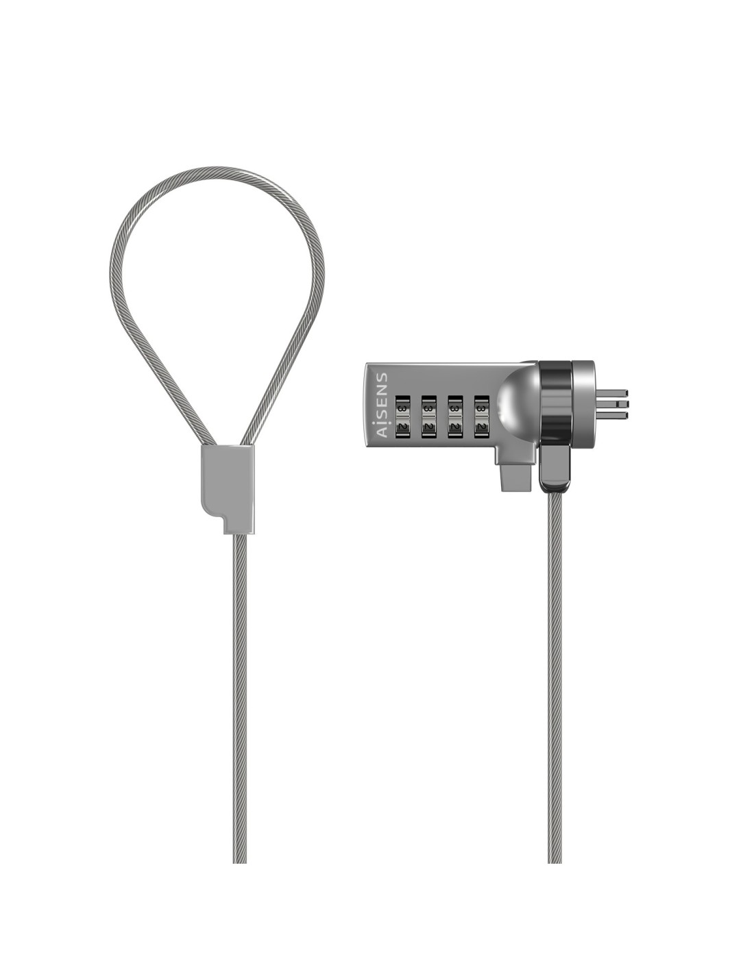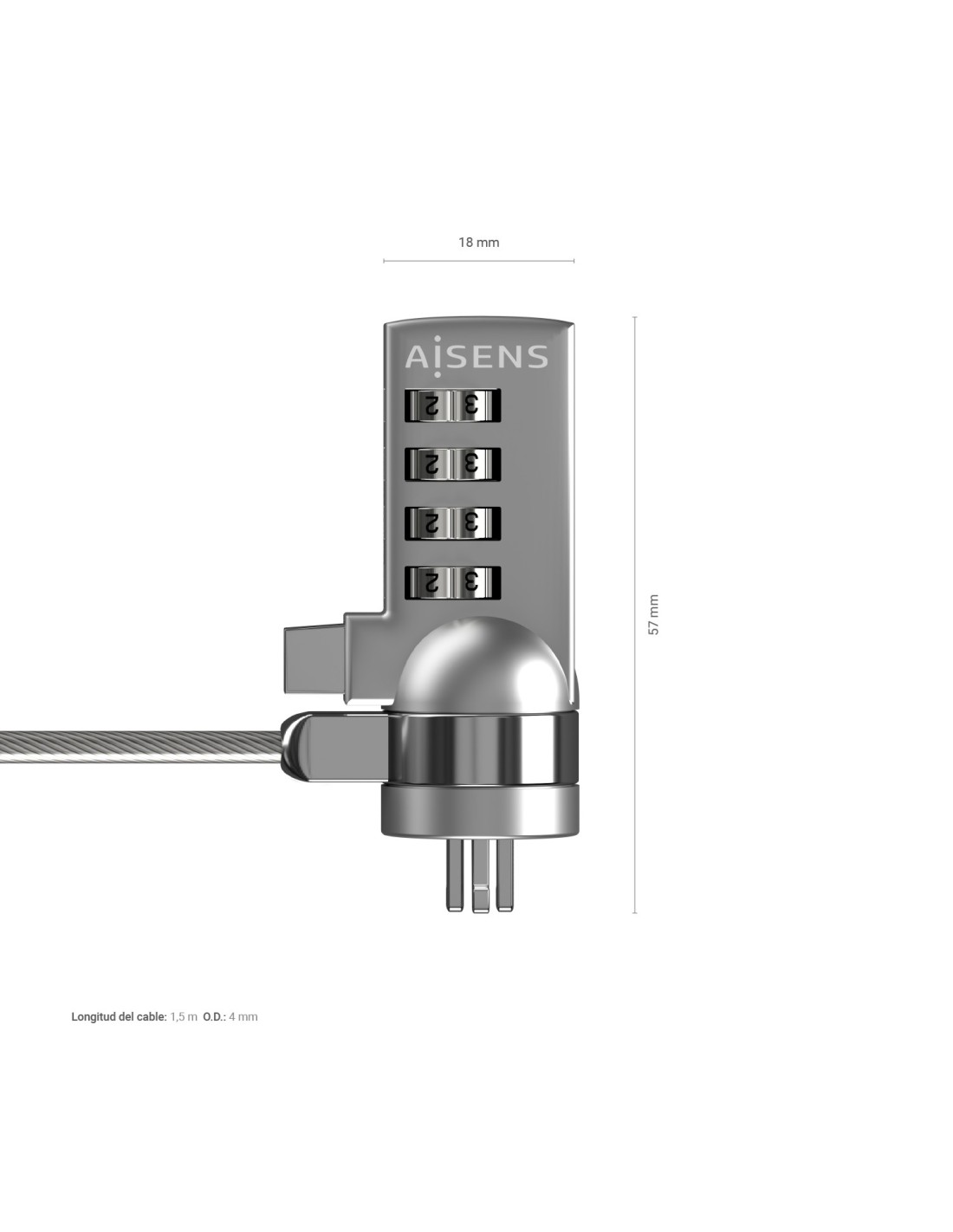 AISENS Cable de Seguridad con Cerradura de Combinacion para Ordenador, Monitor, Portatil 1.5M, 1,5 m, Kensington, Cerradura con combinación, Acero, Plata