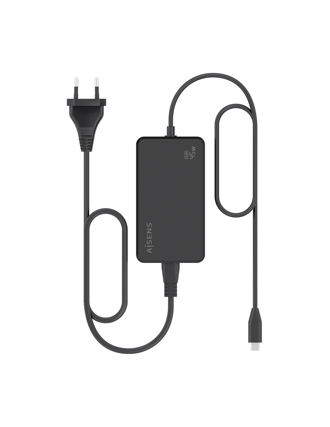 AISENS Cargador De Sobremesa GaN 45W PD3.0 1xUSB-C 1.8m, Negro, Universal, Interior, 110 - 240 V, 50 - 60 Hz, 45 W, 5, 9, 12, 15, 20 V