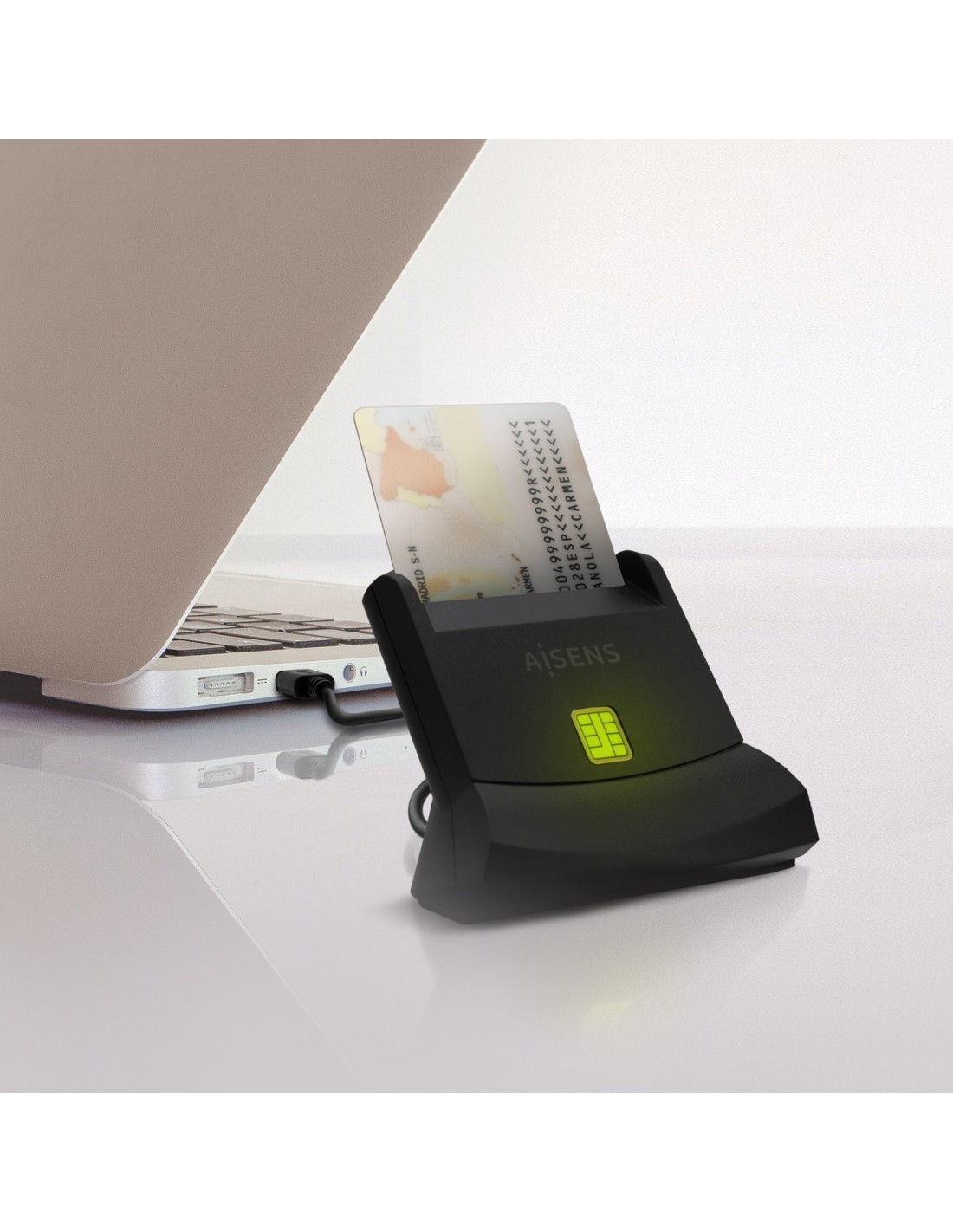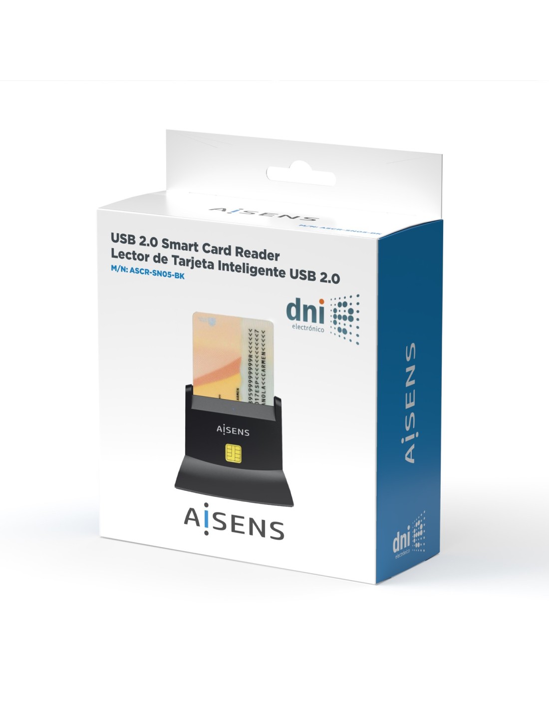 AISENS Lector de Tarjeta Inteligente DNI, Negro, USB 2.0, Negro