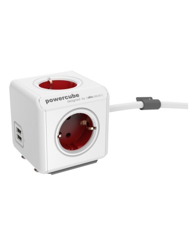 Allocacoc 2402RD/FREUPC base múltiple 1,5 m 4 salidas AC Interior Rojo, Blanco