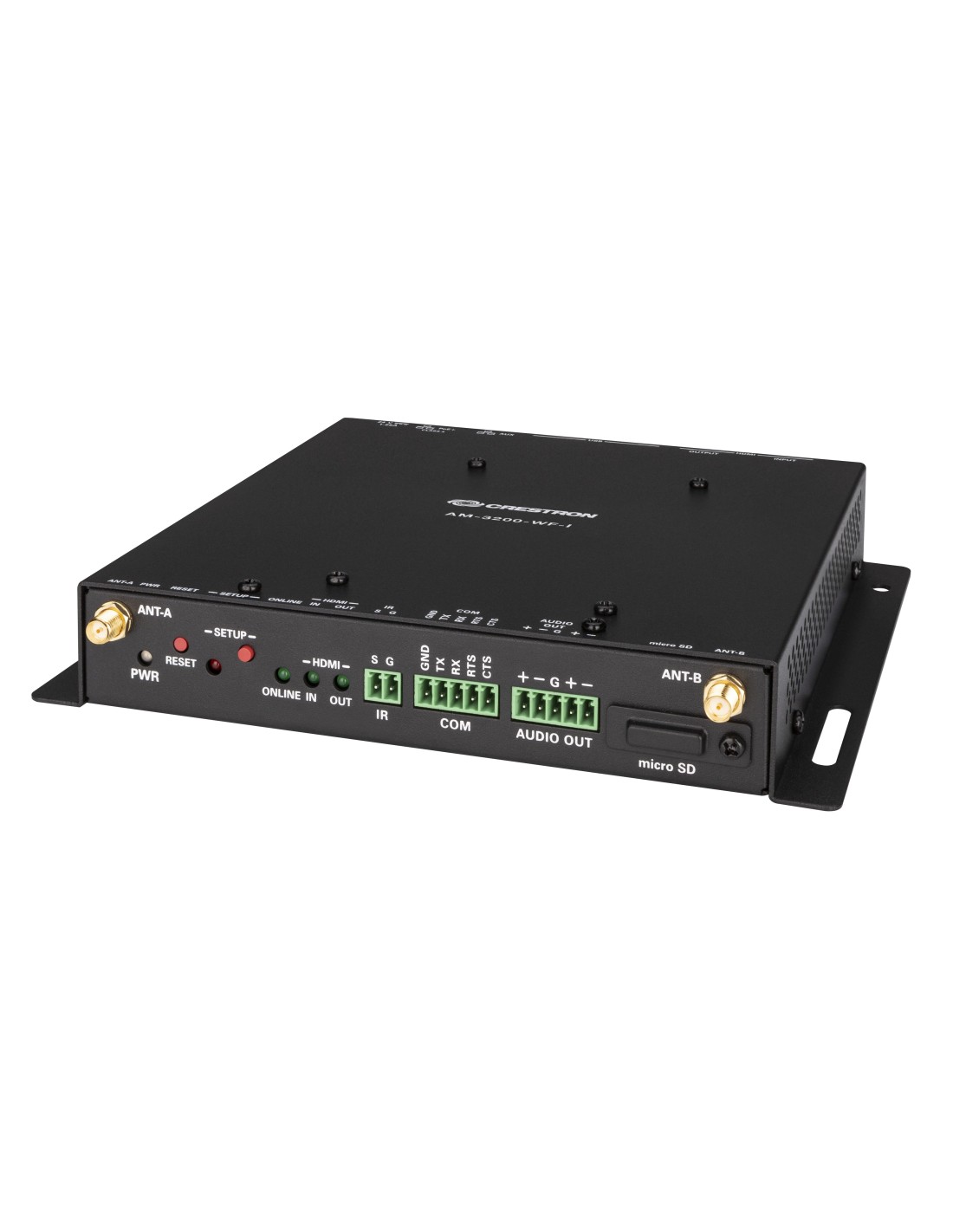 Crestron AM-3200-WF-I. Tipo: Receptor AV, Máxima resolución: 3840 x 2160 Pixeles, Distancia de transferencia máxima: 30 m. Tecnología de conectividad: Inalámbrico y alámbrico, Conector USB: USB tipo A, USB Tipo B. Voltaje de entrada AC: 100 - 240 V, Frecuencia de entrada AC: 50 - 60 Hz, Consumo energético: 14 W. Dimensiones de receptor (Ancho x Profundidad x Altura): 188 x 177 x 33 mm, Peso del receptor: 860 g. Cantidad por paquete: 1 pieza(s)