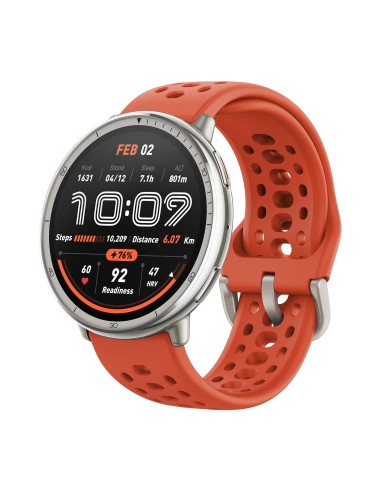 Amazfit Active 2. Diagonal de la pantalla: 3,35 cm (1.32"), Tecnología de visualización: AMOLED, Resolución de la pantalla: 466 x 466 Pixeles, Pantalla táctil. GPS (satélite). Capacidad de batería: 270 mAh. Peso: 29,5 g. Material de la banda: Silicona, Color de banda: Rojo. Sistema operativo instalado: Zepp OS