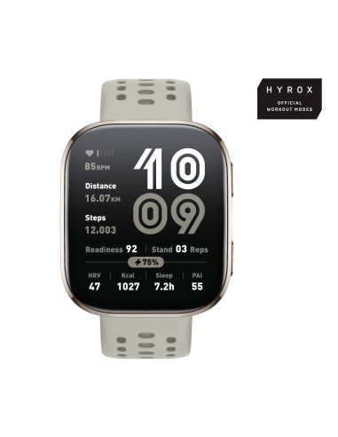 Amazfit Bip 6 Stone. Diagonal de la pantalla: 5 cm (1.97"), Tecnología de visualización: AMOLED, Resolución de la pantalla: 390 x 450 Pixeles, Pantalla táctil. Capacidad de RAM: 64 MB, Memoria flash: 512 GB. GPS (satélite). Capacidad de batería: 340 mAh. Peso: 27,9 g. Material de la banda: Silicona, Color de banda: Gris. Sistema operativo instalado: Amazfit OS