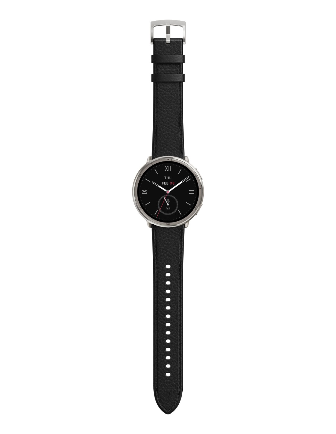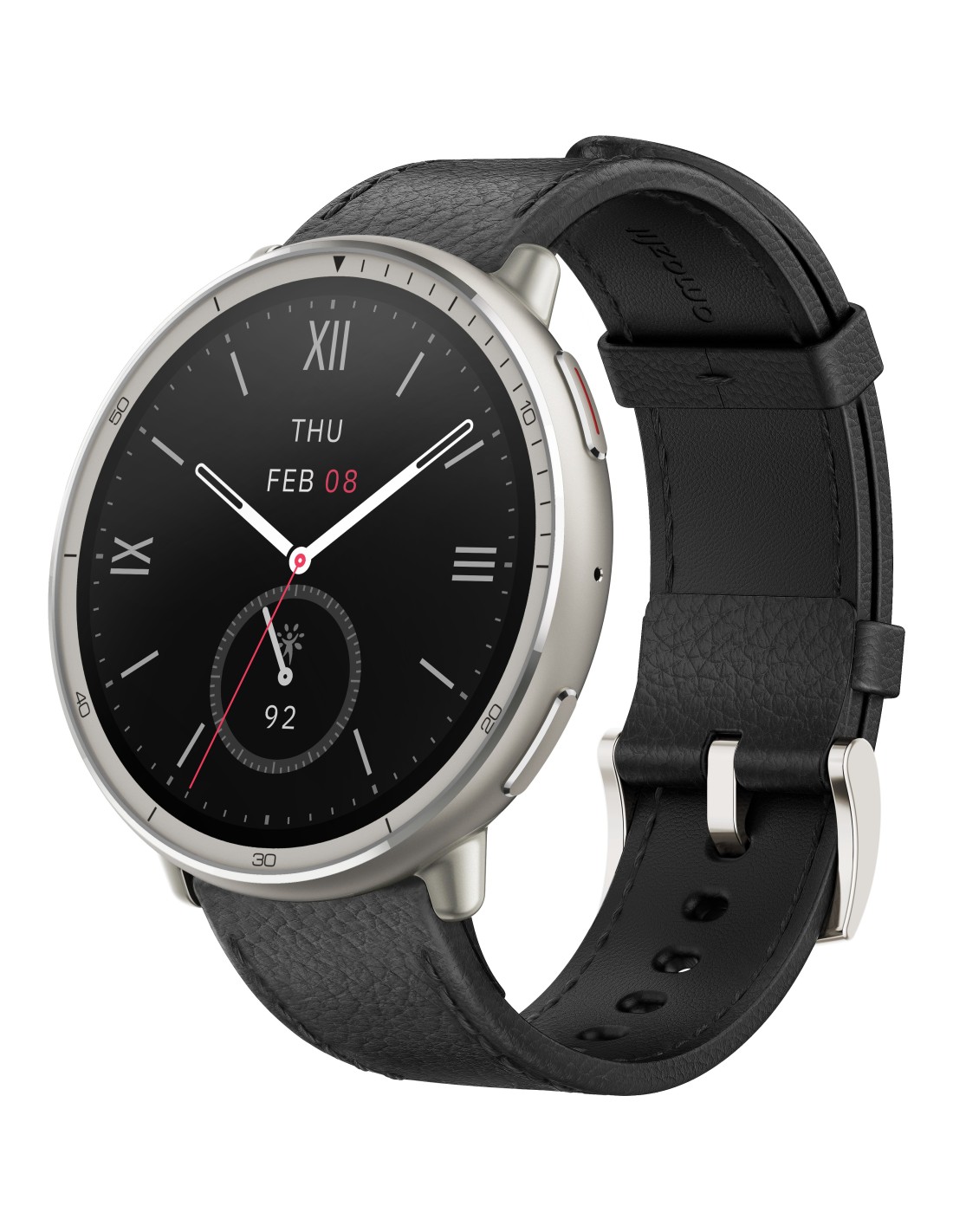 Amazfit W2433EU1N. Diagonal de la pantalla: 3,35 cm (1.32"), Tecnología de visualización: AMOLED, Resolución de la pantalla: 466 x 466 Pixeles, Pantalla táctil. Capacidad de batería: 270 mAh. Peso: 29,5 g. Material de la banda: Cuero, Color de banda: Negro. Sistema operativo instalado: Zepp OS