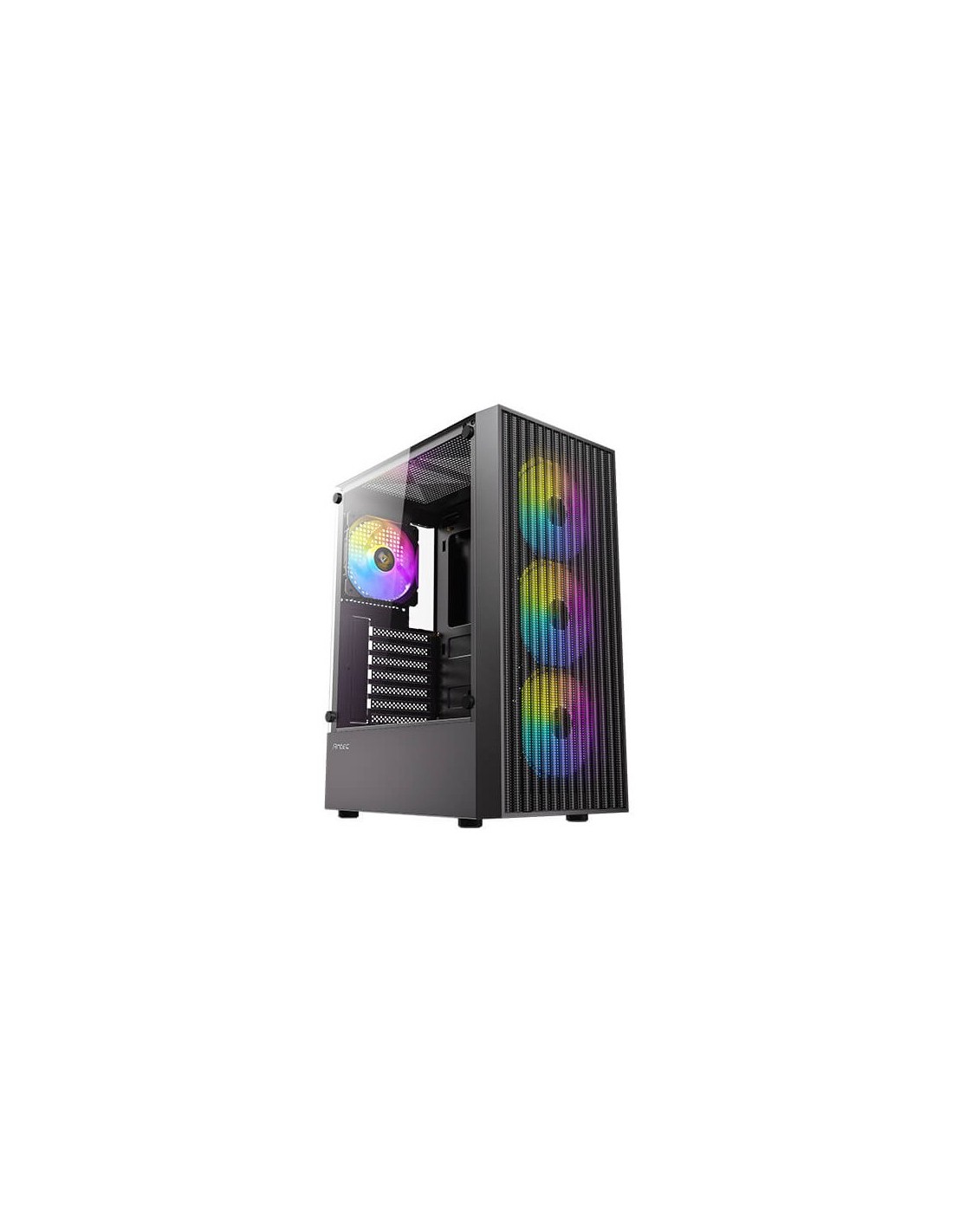 Antec AX27 RGB. Factor de forma: Midi Tower, Tipo: PC, Color del producto: Negro. Ventiladores frontales instalados: 3x 120 mm, Diámetro de ventiladores frontales soportados: 120,140 mm, Ventiladores traseros instalados: 1x 120 mm. Tamaños de disco duro soportados: 2.5,3.5". Ancho: 207 mm, Profundidad: 451 mm, Altura: 345 mm. Ancho del paquete: 250 mm, Profundidad del paquete: 490 mm, Altura del paquete: 397 mm