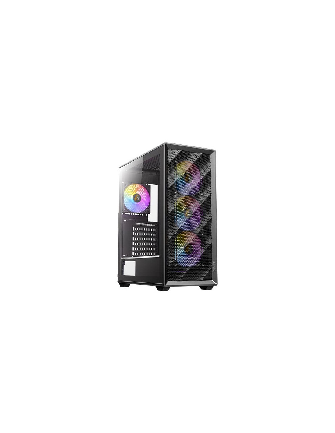 Antec AX85 ARGB. Factor de forma: Midi Tower, Tipo: PC, Color del producto: Negro. Ventiladores frontales instalados: 3x 120 mm, Diámetro de ventiladores frontales soportados: 120,140 mm, Ventiladores traseros instalados: 1x 120 mm. Tamaños de disco duro soportados: 2.5,3.5". Ancho: 205 mm, Profundidad: 393 mm, Altura: 485 mm. Ancho del paquete: 270 mm, Profundidad del paquete: 445 mm, Altura del paquete: 552 mm