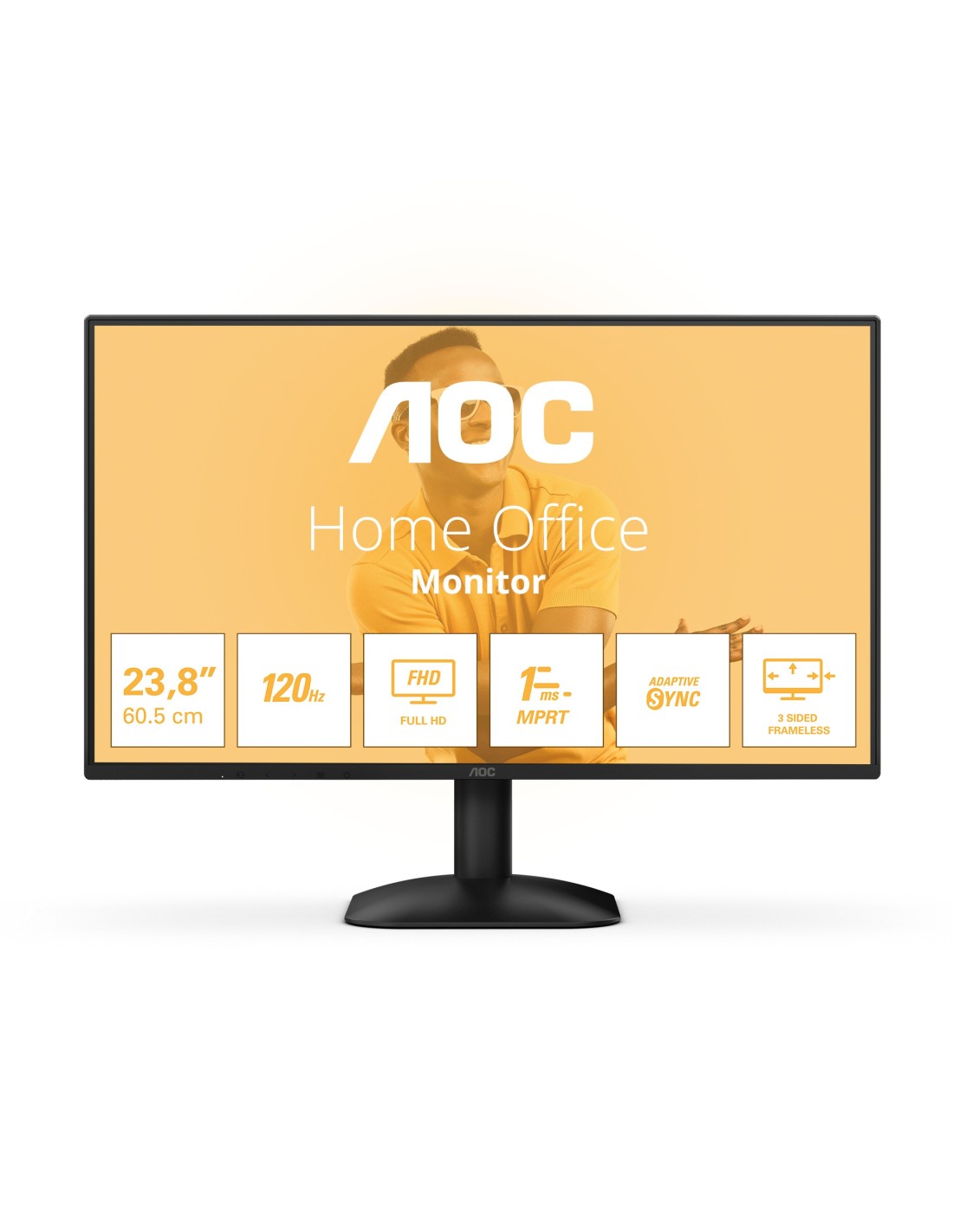 AOC 24B31H. Diagonal de la pantalla: 60,5 cm (23.8"), Resolución de la pantalla: 1920 x 1080 Pixeles, Tipo HD: Full HD, Tiempo de respuesta: 4 ms, Relación de aspecto nativa: 16:9, Ángulo de visión, horizontal: 178°, Ángulo de visión, vertical: 178°. montaje VESA. Color del producto: Negro