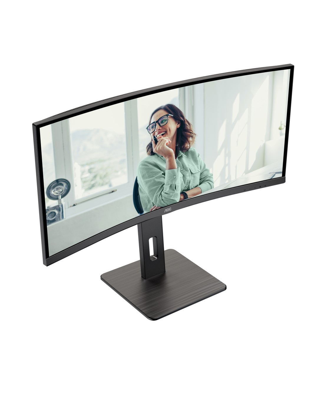 34 inch (86.36 cm) LCD MONITOR El AOC CU34P3CV es una pantalla VA curva de 34" WOHD (3440 × 1440) con un atractivo diseño de bisel ultradelgado en tres lados que ofrece una experiencia de visualización verdaderamente inmersiva. La proporción de aspecto Wide QHD 21:9 de este modelo amplía tu campo de visión al mismo tiempo que proporciona una vista envolvente para una experiencia cinematográfica mejorada. El panel cuenta con un brillo de 300 nits y generosos ángulos de visión de 178/178°, junto con dos altavoces incorporados de 5W + 5W para mejorar tu productividad diaria en la oficina flexible de hoy en día. El monitor CU34P3CV está listo para aumentar tu productividad con soporte USB-C que admite entrega de energía de hasta 65W, transferencia de datos y modo DP-alt. La conectividad de este monitor se ve reforzada con un Hub USB y RJ-45. Manteniendo la sostenibilidad en mente, una serie de certificaciones ambientales, incluyendo EPA, TCO y EPEAT, completan este monitor.
