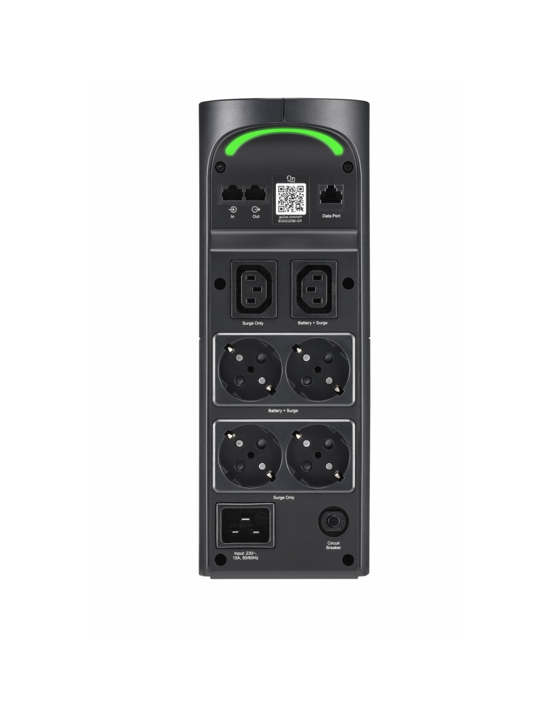 APC Back-UPS Pro BGM2200B-GR - 2200VA/1320W, 4 salidas Schuko y 2 salidas C13, 3 cargadores USB, puerto de datos USB. Topología UPS: Línea interactiva, Capacidad de potencia de salida (VA): 2,2 kVA, Potencia de salida: 1320 W. Tipo de salida AC: C13 acoplador, Tipo F, Conector: Tipo F, Cantidad de salidas AC: 6 salidas AC. Tecnología de batería: Sealed Lead Acid (VRLA), Voltaje de la pila: 24 V, Vida útil de la batería (máx.): 5 año(s). Factor de forma: Torre, Color del producto: Negro, Capacidad del rack: 0U. Certificación: IEC 62040-1-1 IEC 62040-2