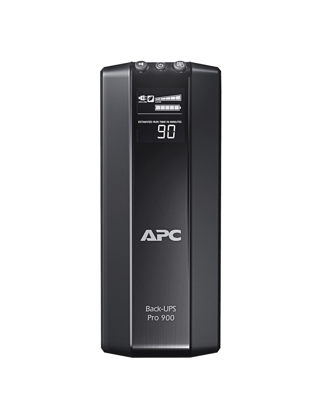 APC BR900G-FR. Capacidad de potencia de salida (VA): 0,9 kVA, Potencia de salida: 540 W, Índice de aumento de energía: 355 J. Tipo de salida AC: Tipo E. Tecnología de batería: Sealed Lead Acid (VRLA), Tiempo de recarga de la batería: 8 h. Color del producto: Negro, Longitud de cable: 1,52 m. Ancho: 100 mm, Profundidad: 382 mm, Altura: 250 mm
