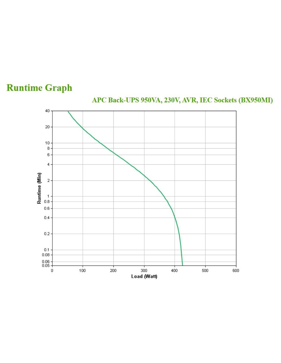 APC BX950MI. Topología UPS: Línea interactiva, Capacidad de potencia de salida (VA): 0,95 kVA, Potencia de salida: 520 W. Tipo de salida AC: C13 acoplador, Conector: C14 acoplador, Cantidad de salidas AC: 6 salidas AC. Tecnología de batería: Sealed Lead Acid (VRLA), Tiempo típico de respaldo a carga completa: 1 min, Tiempo típico de respaldo a media carga: 6,5 min. Factor de forma: Compacto, Color del producto: Negro, Longitud de cable: 1,2 m. Certificados de conformidad: RoHS, Certificación: CB Meet EN62040-1 / CE / IEC-62040-1 / IEC-62040-2