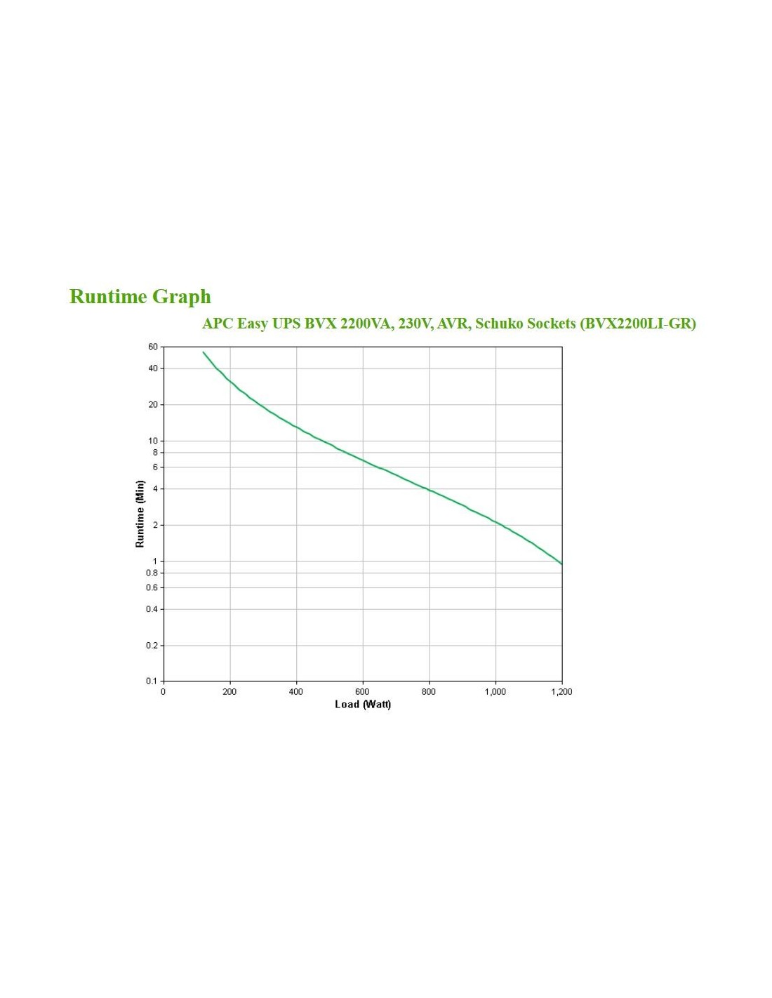 APC Easy UPS. Topología UPS: Línea interactiva, Capacidad de potencia de salida (VA): 2,2 kVA, Potencia de salida: 1200 W. Tipo de salida AC: Tipo F, Conector: Tipo F, Cantidad de salidas AC: 4 salidas AC. Tecnología de batería: Plomo-ácido, Capacidad de la batería: 9 Ah, Voltaje de la pila: 24 V. Color del producto: Negro, Longitud de cable: 1,2 m, Código IP (International Protection): IP20. Certificación: CE, EN/IEC 62040-1, EN/IEC 62040-2