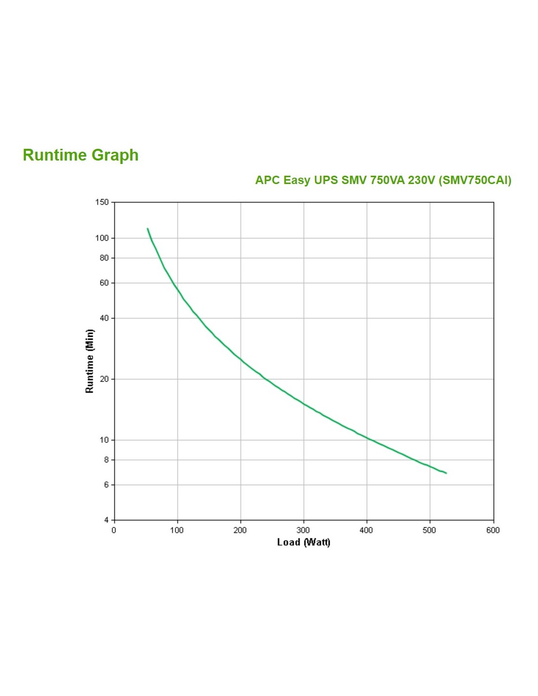 APC Easy UPS SMV. Topología UPS: Línea interactiva, Capacidad de potencia de salida (VA): 0,75 kVA, Potencia de salida: 525 W. Tipo de salida AC: IEC 320, Cantidad de salidas AC: 6 salidas AC. Tecnología de batería: Sealed Lead Acid (VRLA), Capacidad de la batería: 7 Ah, Voltaje de la pila: 12 V. Factor de forma: Torre, Color del producto: Negro, Tipo de visualizador: LCD. Cables incluidos: Cable USB
