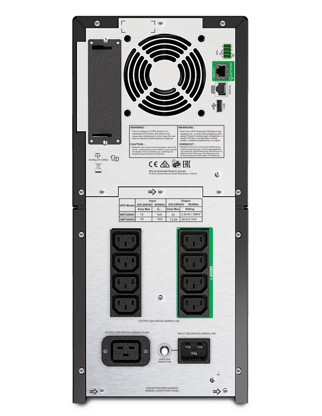 APC Smart-UPS 2200VA. Topología UPS: Línea interactiva, Capacidad de potencia de salida (VA): 2,2 kVA, Potencia de salida: 1980 W. Tipo de salida AC: IEC 60320, Cantidad de salidas AC: 9 salidas AC, Tipo de puerto USB: USB tipo A. Tecnología de batería: Sealed Lead Acid (VRLA), Tiempo típico de respaldo a carga completa: 8,7 min, Tiempo típico de respaldo a media carga: 25 min. Color del producto: Negro, Tipo de visualizador: LCD. Certificados de conformidad: RoHS, Certificación: CE, CSA, EAC, EN/IEC 62040-1, EN/IEC 62040-2, RCM, VDE