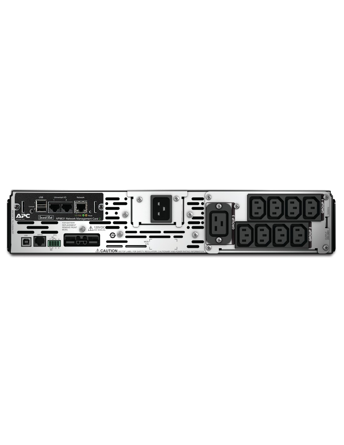 APC Smart-UPS. Topología UPS: Línea interactiva, Capacidad de potencia de salida (VA): 3 kVA, Potencia de salida: 2700 W. Tipo de salida AC: C13 acoplador, C19 acoplador, Conector: C20 acoplador, Cantidad de salidas AC: 9 salidas AC. Tecnología de batería: Sealed Lead Acid (VRLA), Capacidad de la batería: 738 VAh, Tiempo típico de respaldo a carga completa: 6,25 min. Factor de forma: Montaje en rack/Torre o Montaje en bastidor/Torre, Color del producto: Negro, Capacidad del rack: 2U. Certificados de conformidad: RoHS, Certificación: C-tick, CE, EN 50091-1, EN 50091-2, EN 55022 Class A, EN 60950, FCC Part 15 Class A, GOST, IRAM,...