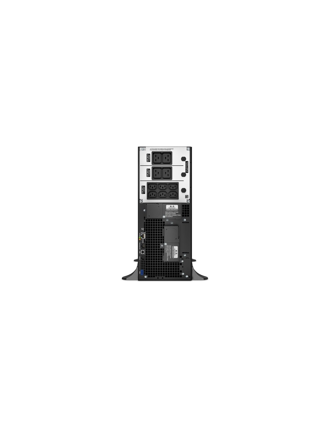 APC Smart-UPS On-Line. Topología UPS: Doble conversión (en línea), Capacidad de potencia de salida (VA): 6 kVA, Potencia de salida: 6000 W. Tipo de salida AC: C13 acoplador, C19 acoplador, Conector: Hardwire, Cantidad de salidas AC: 10 salidas AC. Tecnología de batería: Sealed Lead Acid (VRLA), Capacidad de la batería: 902 VAh, Tiempo típico de respaldo a carga completa: 2,5 min. Factor de forma: Montaje en rack/Torre o Montaje en bastidor/Torre, Color del producto: Negro, Tipo de visualizador: LCD. Certificados de conformidad: RoHS, Certificación: REACH, CE, CE Mark, EAC, EN/IEC 62040-1, EN/IEC 62040-2, IRAM, RCM, VDE