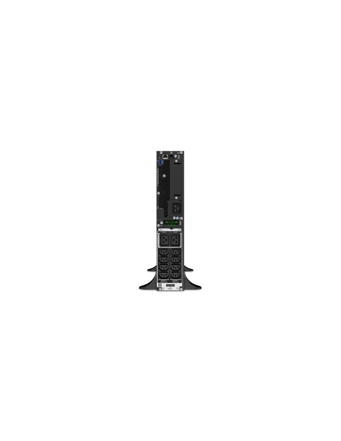 APC Smart-UPS On-Line. Topología UPS: Doble conversión (en línea), Capacidad de potencia de salida (VA): 2,2 kVA, Potencia de salida: 1980 W. Tipo de salida AC: C13 acoplador, C19 acoplador, Conector: C20 acoplador, Cantidad de salidas AC: 10 salidas AC. Tecnología de batería: Sealed Lead Acid (VRLA), Capacidad de la batería: 367 VAh, Tiempo típico de respaldo a carga completa: 3,9 min. Factor de forma: Montaje en rack/Torre o Montaje en bastidor/Torre, Color del producto: Negro, Longitud de cable: 2,44 m. Certificados de conformidad: RoHS, Certificación: CE, CE Mark, EAC, EN/IEC 62040-1, EN/IEC 62040-2, RCM, VDE, REACH