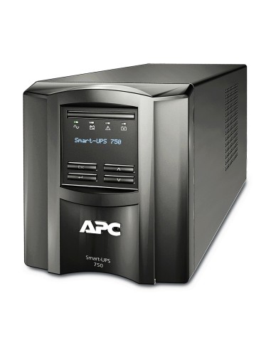 APC SMT750IC. Topología UPS: Línea interactiva, Capacidad de potencia de salida (VA): 0,75 kVA, Potencia de salida: 500 W. Tipo de salida AC: C13 acoplador, Conector: C14 acoplador, Cantidad de salidas AC: 6 salidas AC. Tecnología de batería: Sealed Lead Acid (VRLA), Tiempo típico de respaldo a carga completa: 4,6 min, Tiempo típico de respaldo a media carga: 15,8 min. Factor de forma: Torre, Color del producto: Negro, Longitud de cable: 1,83 m. Certificados de conformidad: RoHS, Certificación: CE, CSA, EAC, EN/IEC 62040-1, EN/IEC 62040-2, RCM, UL 1778, VDE, REACH, PEP, EOLI
