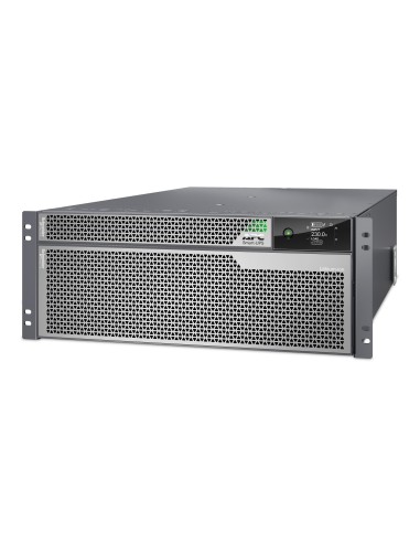APC SRTL10KRM4UI. Topología UPS: Doble conversión (en línea), Capacidad de potencia de salida (VA): 10 kVA, Potencia de salida: 10000 W. Tipo de salida AC: C13 acoplador, C19 acoplador, Hardwire, Conector: Hardwire, Cantidad de salidas AC: 12 salidas AC. Tecnología de batería: Ión de litio, Voltaje de la pila: 180 V, Tiempo típico de respaldo a carga completa: 5 min. Factor de forma: Montaje en rack/Torre o Montaje en bastidor/Torre, Color del producto: Gris, Capacidad del rack: 4U. Certificados de conformidad: CE, REACH, UKCA, VDE, Certificación: EN/IEC 62040-1 EN/IEC 62040-2 IEC 62040-2