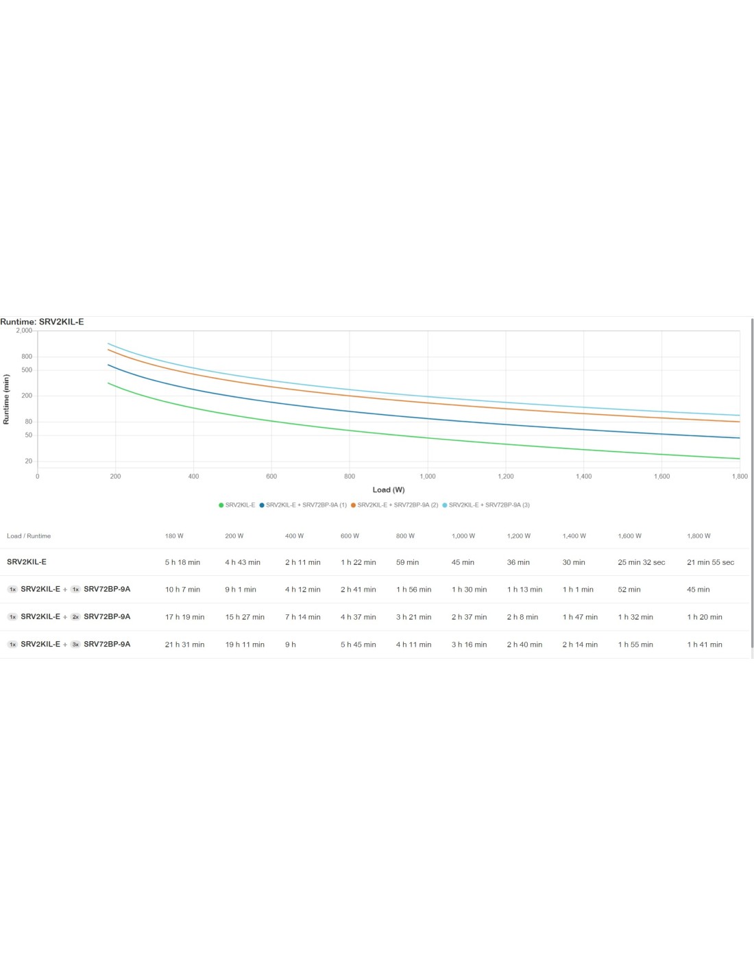 APC SRV2KIL-E. Capacidad de potencia de salida (VA): 2 kVA, Potencia de salida: 1800 W, Forma de onda: Seno. Tipo de salida AC: IEC 60320, Conector: C20 acoplador. Tecnología de batería: Sealed Lead Acid (VRLA), Voltaje de la pila: 72 V, Tiempo de recarga de la batería: 5,5 h. Color del producto: Negro, Código IP (International Protection): IP20. Ancho: 335 mm, Profundidad: 425 mm, Altura: 336 mm