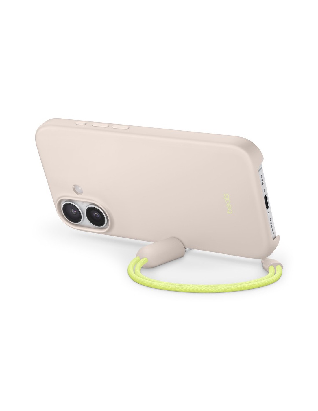 La funda está diseñada para proteger tu iPhone de golpes y arañazos. Incluye un práctico cordón extraíble con un minisoporte en el extremo para apoyar el dispositivo y ver la pantalla cómodamente en horizontal.