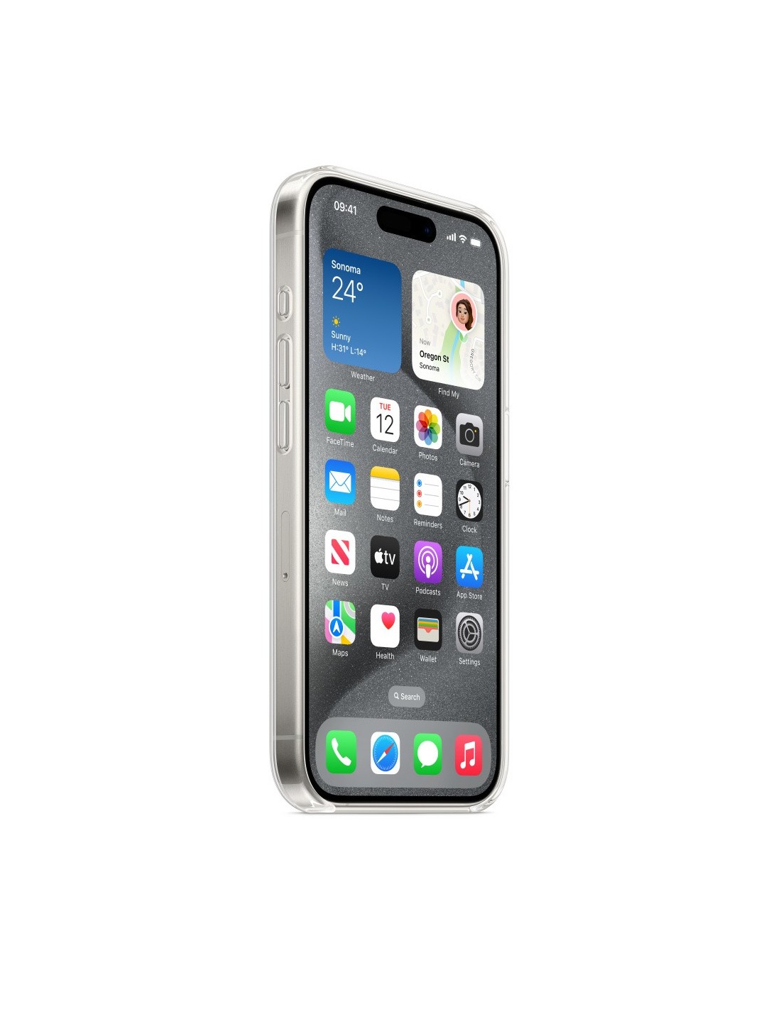 Apple MT223ZM/A. Tipo de funda: Funda, Marca compatible: Apple, Compatibilidad: iPhone 15 Pro, Tamaño máximo de pantalla: 15,5 cm (6.1"), Coloración de superficie: Monocromo, Color del producto: Transparente