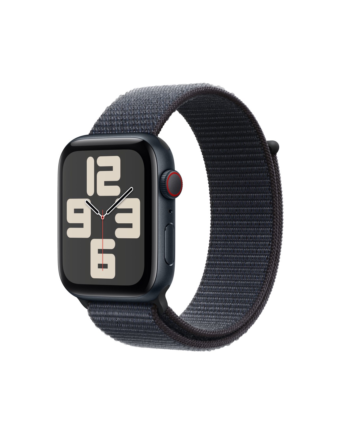 Apple Watch SE. Tecnología de visualización: OLED, Resolución de la pantalla: 368 x 448 Pixeles, Pantalla táctil. Memoria flash: 32 GB. Wifi. GPS (satélite). Peso: 32,9 g. Humedad: resistente al agua hasta: 50 m, Material de la banda: Textil, Color de banda: Negro, Tamaño de banda: Talla única. Sistema operativo instalado: watchOS 11