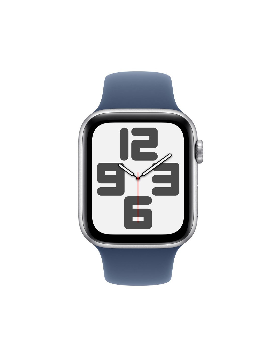 Apple Watch SE. Tecnología de visualización: OLED, Resolución de la pantalla: 368 x 448 Pixeles, Pantalla táctil. Memoria flash: 32 GB. Wifi. GPS (satélite). Peso: 32,9 g. Humedad: resistente al agua hasta: 50 m, Material de la banda: Caucho, Color de banda: Azul, Tamaño de banda: S/M. Sistema operativo instalado: watchOS 11